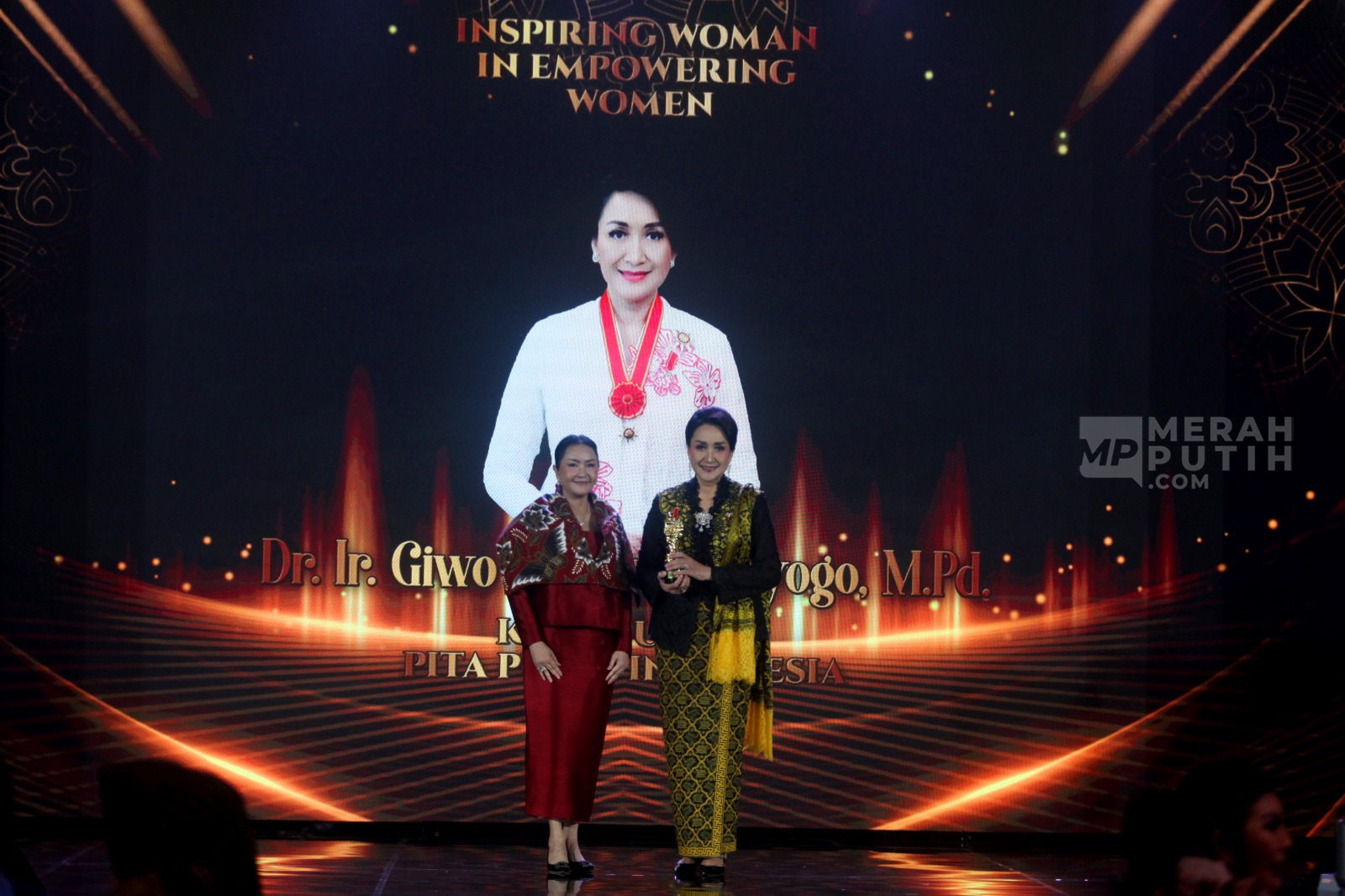 Merahputih.com - Ketua Umum Pita putih Indonesia Giwo Rubianto Wiyogo (kanan) menerima penghargaan RA Kartini Award 2025 Kategori Inspiring Women in Empowering Women dari CEO Transmedia, Atiek Nur Wahyuni dalam malam anugerah RA Kartini Award 2025 di Jakarta, Kamis (26/6/2025).
