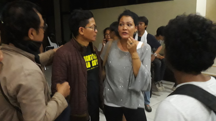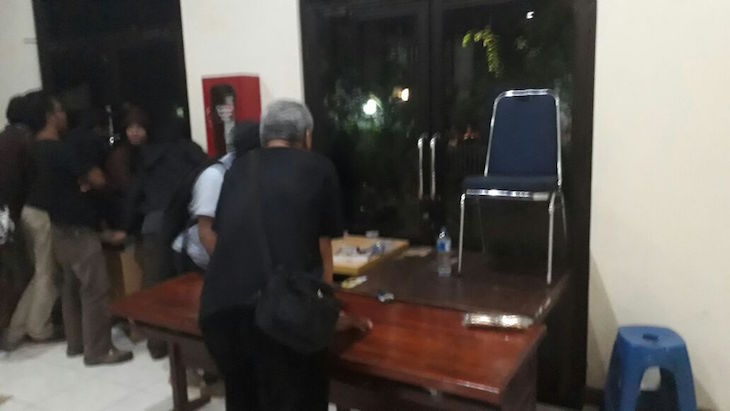 Para panitia dan peserta yang semua bertahan di halaman kantor YLBHI, akhirnya masuk.
