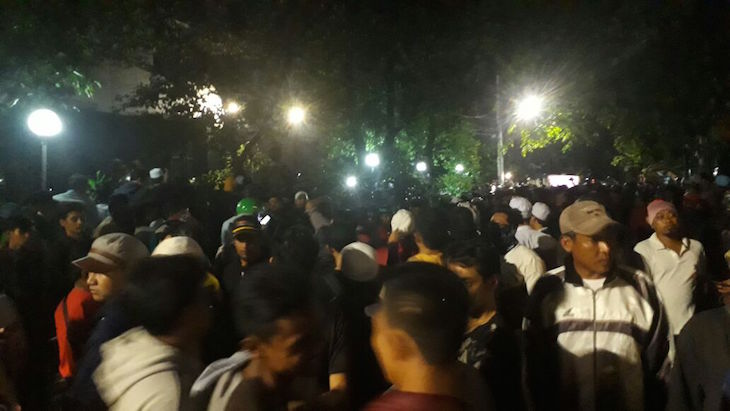 Wartawan MerahPutih.com Ponco Sulaksono yang berada dilokasi melaporkan bahwa menginjak sekitar pukul 22.30 kondisi jalanan di Salemba Raya, sekitar kantor YLBH sudah semakin ruwet. Hal itu disebabkan semakin banyaknya massa yang berkumpul dan mengepung kantor YLBHI. Berkali-kali massa tersebut berteriak, “Keluar kalian. Gayang PKI…”