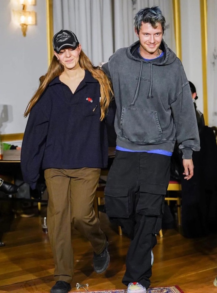 Sebanyak 32 busana ditampilkan pada peragaan busana tersebut, termasuk perempuan yang menyeret taplak meja itu. Motif kotak-kotak dan bergaris menjadi busana yang sering muncul dalam parade itu. Penggunaan sarung tangan dan jenis busana yang oversize semakin memperkuat tema 90an dan Y2K pada Dress for Disarter.