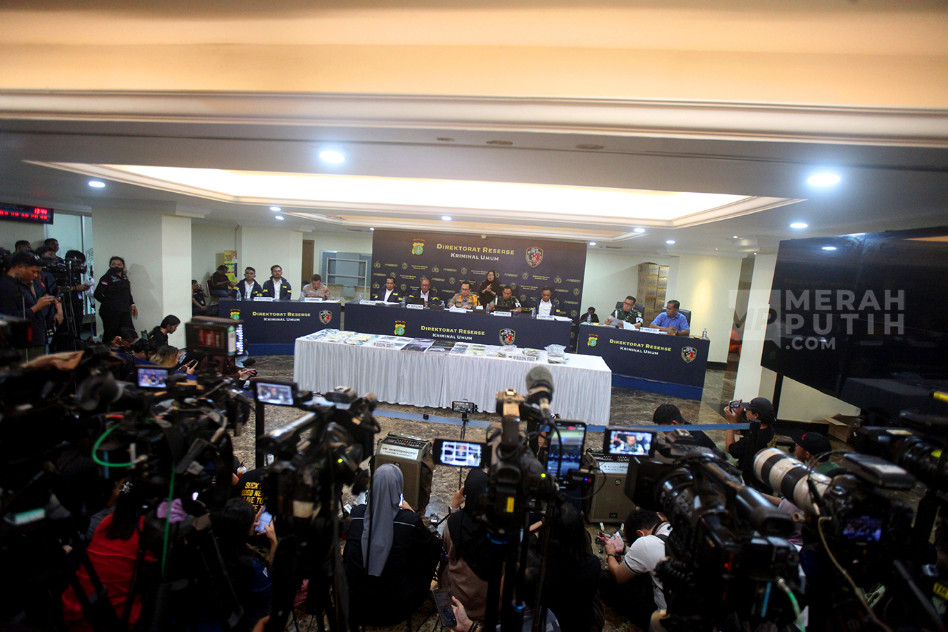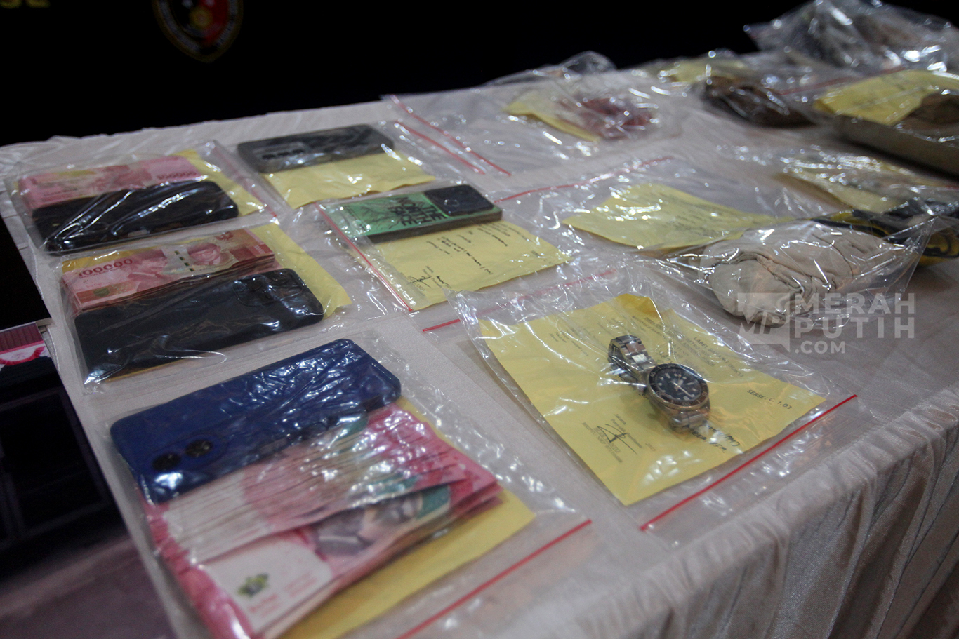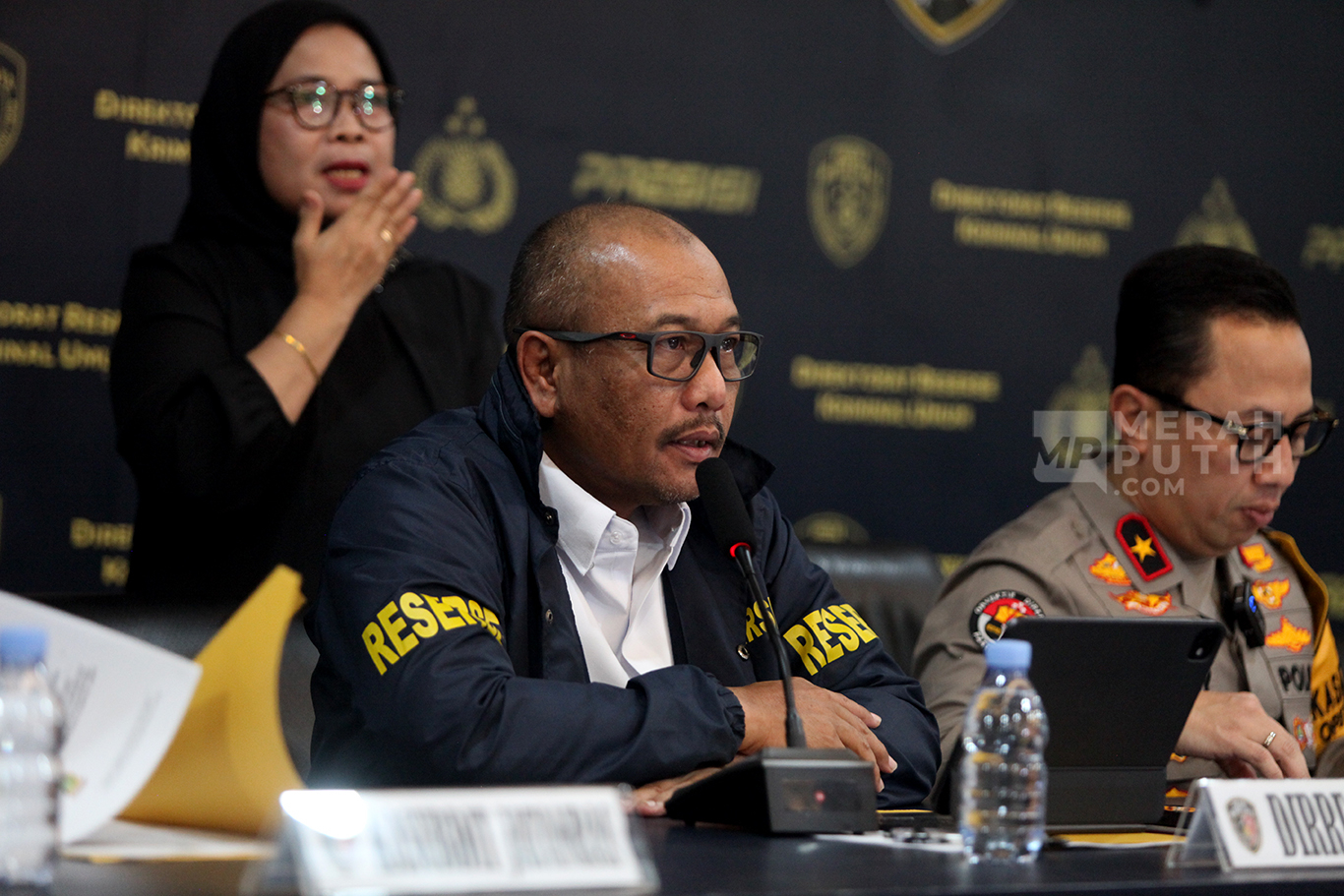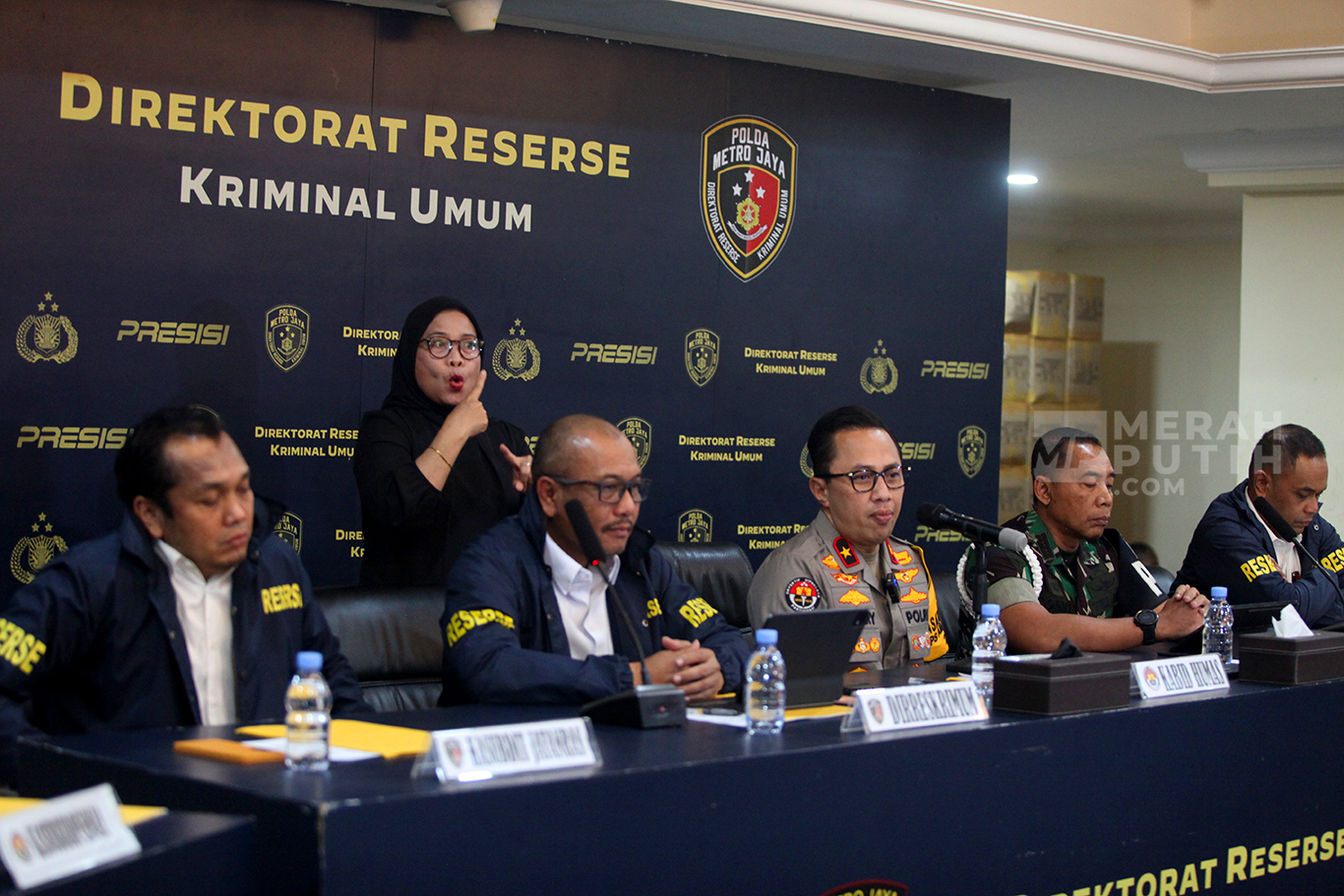 Merahputih.com - Kabid Humas Polda Metro Jaya, Brigjen Ade Ary Syam Indradi (ketiga kiri) bersama Dirkrimum Polda Metro Jaya Kombes Wira Satya Triputra (tengah) dan Danpomdam Jaya Kolonel CPM Donny Agus (kedua kanan) saat menunjukkan barang bukti usai keterangan pers kasus pembunuhan kacab bank BRI di Gedung Ditreskrimum Polda Metro Jaya, Selasa (16/9/2025).
