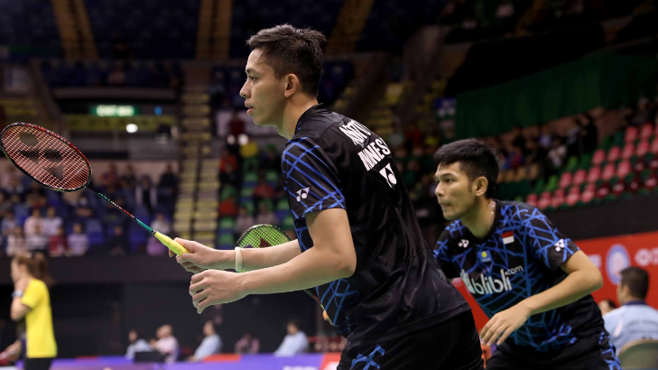 Sayang sukses Fajar/Rian gagal diikuti wakil Indonesia di nomor tunggal putra. Jonatan Christie harus menyerah dari unggulan pertama asal Jepang, Kento Momota.