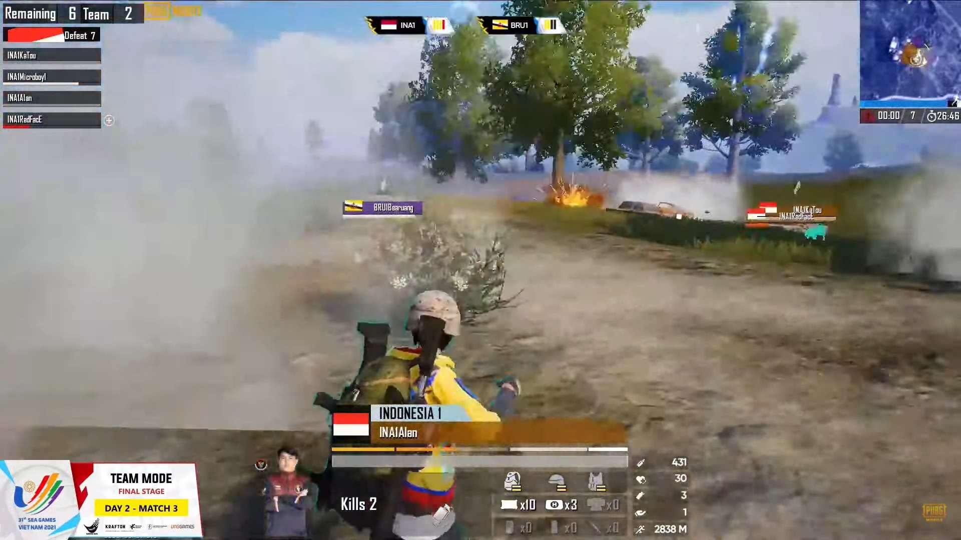 FINAL PUBG Mobile SEA Games 2021 hari kedua telah rampung. Dua tim, Merah Putih (Timnas Indonesia 1) dan Garuda (Timnas Indonesia 2) berhasil memperkuat posisi di peringkat sepuluh besar.
