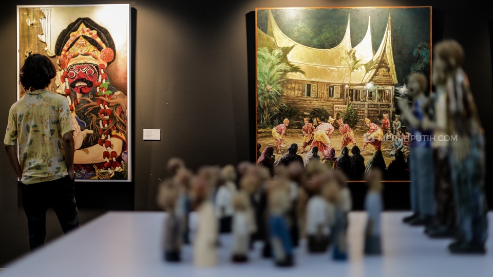 Pengunjung mengamati lukisan saat mengunjungi Pekan Kebudayaan Nasional 2019 di Istora Senayan, Komplek Gelora Bung Karno (GBK), Jakarta, Kamis, (10/10/2019). Pekan Kebudayaan Nasional 2019 yang diselenggarakan oleh Kementerian Pendidikan dan Kebudayaan (Kemendikbud) telah berlangsung sejak 7-13 Oktober di Istora Senayan. Pagelaran tersebut juga akan menyuguhkan beragam pertunjukkan, mulai dari ekshibisi kebudayaan, pergelaran karya budaya bangsa, hingga konferensi pemajuan kebudayaan. Merahputih.com / Rizki Fitrianto