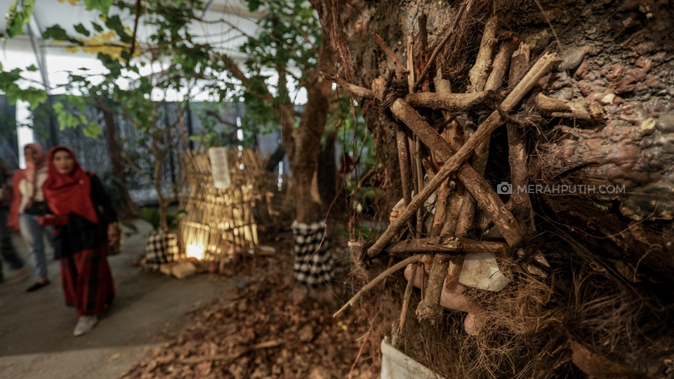 Pengunjung mengamati instalasi pameran Kambira yang merupakan makam bayi suku Tana Toraja di Pekan Kebudayaan Nasional 2019 di Istora Senayan, Komplek Gelora Bung Karno (GBK), Jakarta, Kamis, (10/10/2019). Pekan Kebudayaan Nasional 2019 yang diselenggarakan oleh Kementerian Pendidikan dan Kebudayaan (Kemendikbud) telah berlangsung sejak 7-13 Oktober di Istora Senayan. Pagelaran tersebut juga akan menyuguhkan beragam pertunjukkan, mulai dari ekshibisi kebudayaan, pergelaran karya budaya bangsa, hingga konferensi pemajuan kebudayaan. Merahputih.com / Rizki Fitrianto