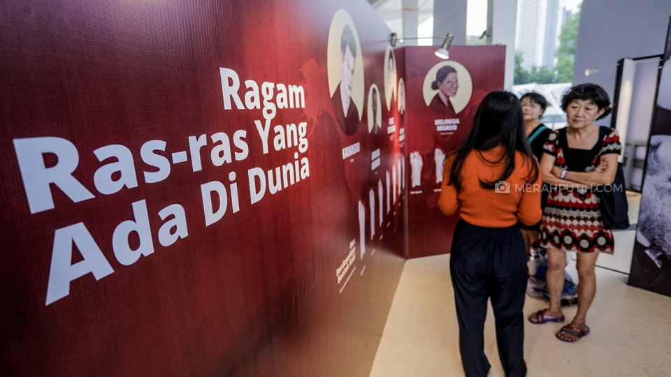 Pengunjung mengamati instalasi infografis saat mengunjungi Pekan Kebudayaan Nasional 2019 di Istora Senayan, Komplek Gelora Bung Karno (GBK), Jakarta, Kamis, (10/10/2019). Pekan Kebudayaan Nasional 2019 yang diselenggarakan oleh Kementerian Pendidikan dan Kebudayaan (Kemendikbud) telah berlangsung sejak 7-13 Oktober di Istora Senayan. Pagelaran tersebut juga akan menyuguhkan beragam pertunjukkan, mulai dari ekshibisi kebudayaan, pergelaran karya budaya bangsa, hingga konferensi pemajuan kebudayaan. Merahputih.com / Rizki Fitrianto