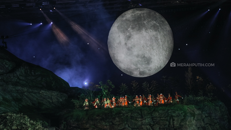 Sejumlah penari membawakan Tarian Padang Bulan dengan diiringin musik oleh pianis muda Joey Alexander pada pembukaan Asian Games ke-18 di SUGBK, Jakarta. Merahputih.com / Rizki Fitrianto