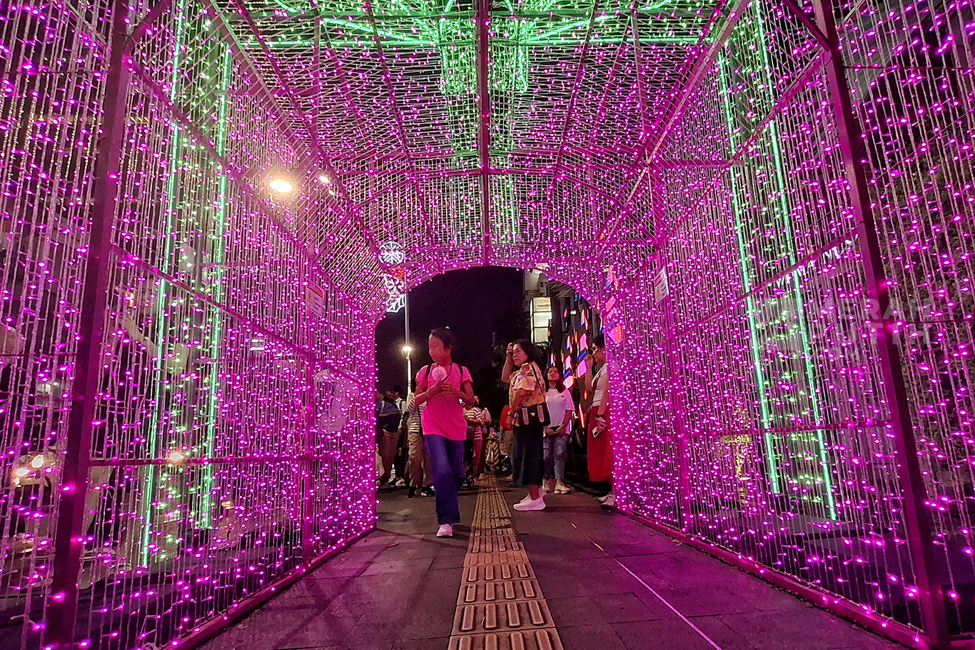 Merahputih.com - Warga menikmati aneka ornamen lampu hias dalam "Jakarta Light Festival" di Trotoar Jalan MH.Thamrin, Kawasan Bundaran HI, Jakarta, Kamis (25/12/2025), malam.