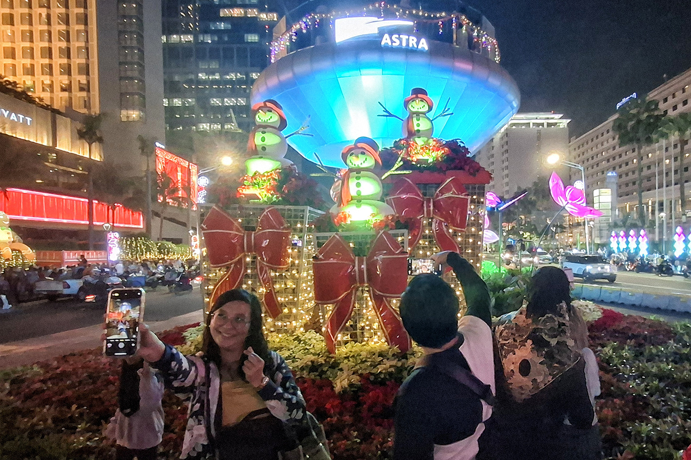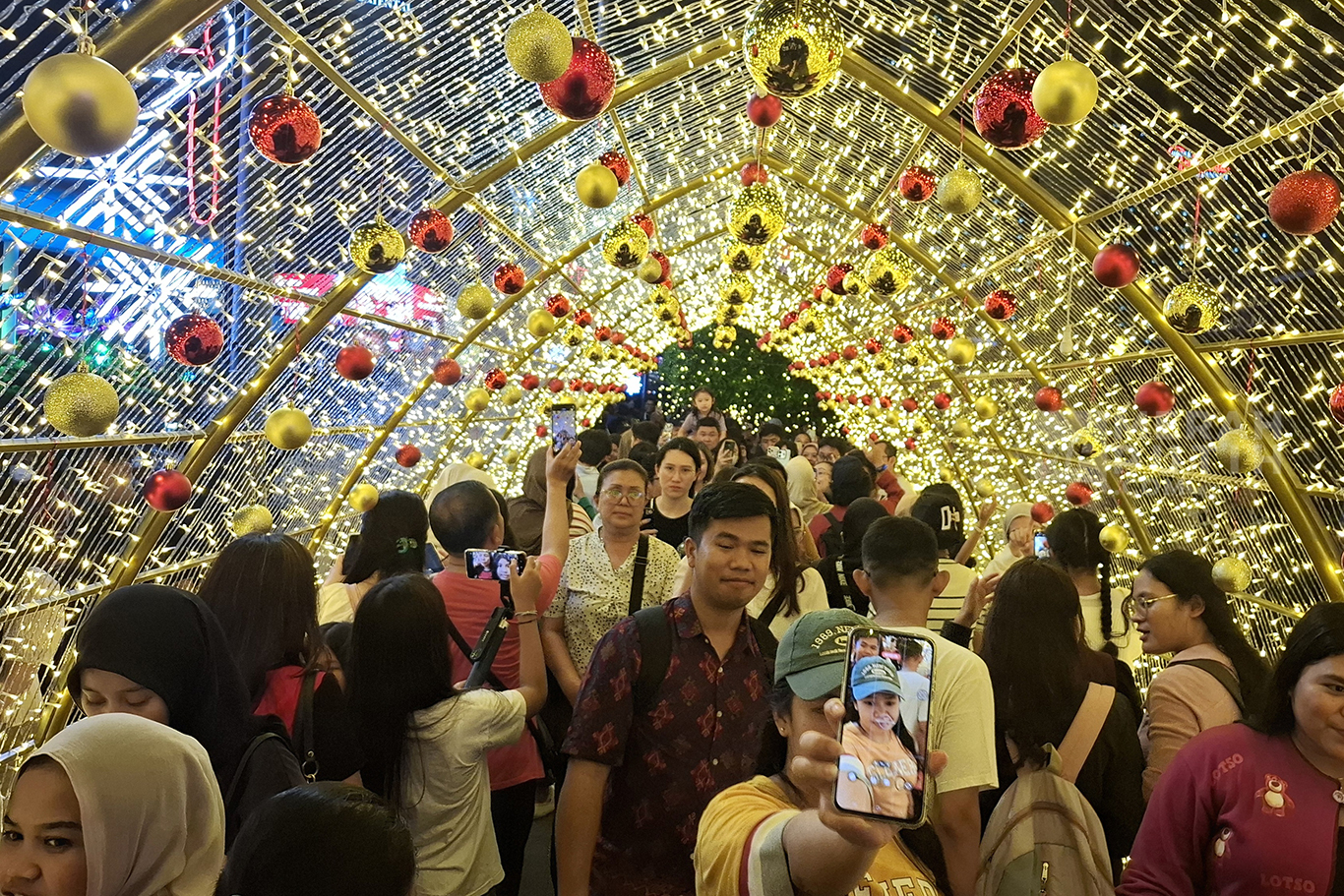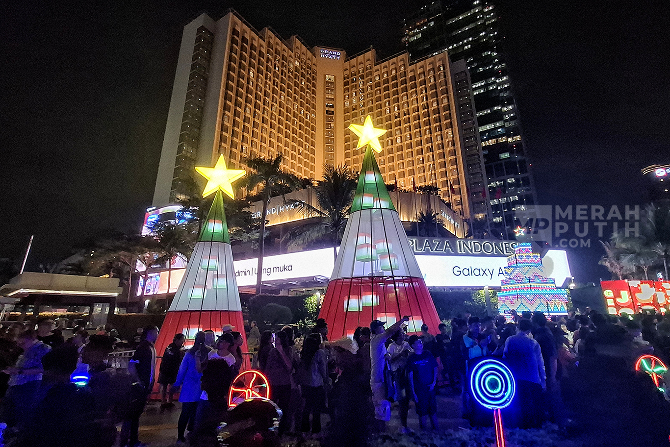 Warga Jakarta mengunjugi kawasan Bundaran Hotel Indonesia (HI), Jakarta Pusat untuk menikmati Jakarta Light Festival 2025 edisi Natal yang digelar Pemerintah Provinsi Jakarta. Aneka lampu hias dengan beragam cahaya spektakuler yang hadir mulai 23 hingga 27 Desember 2025 ini digelar dalam rangka memeriahkan perayaan Natal dan Tahun Baru 2026. (Foto: MP/Didik Setiawan).