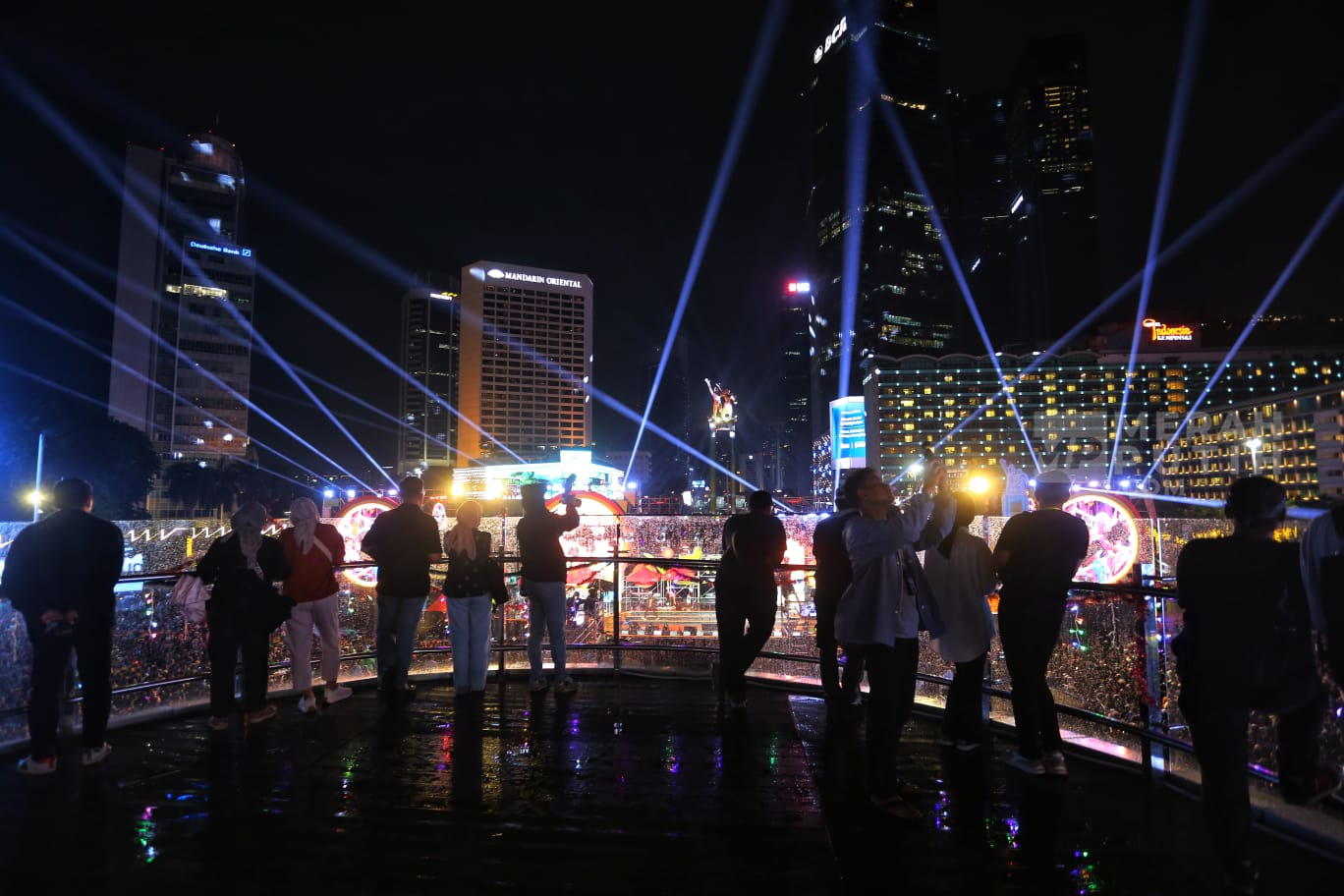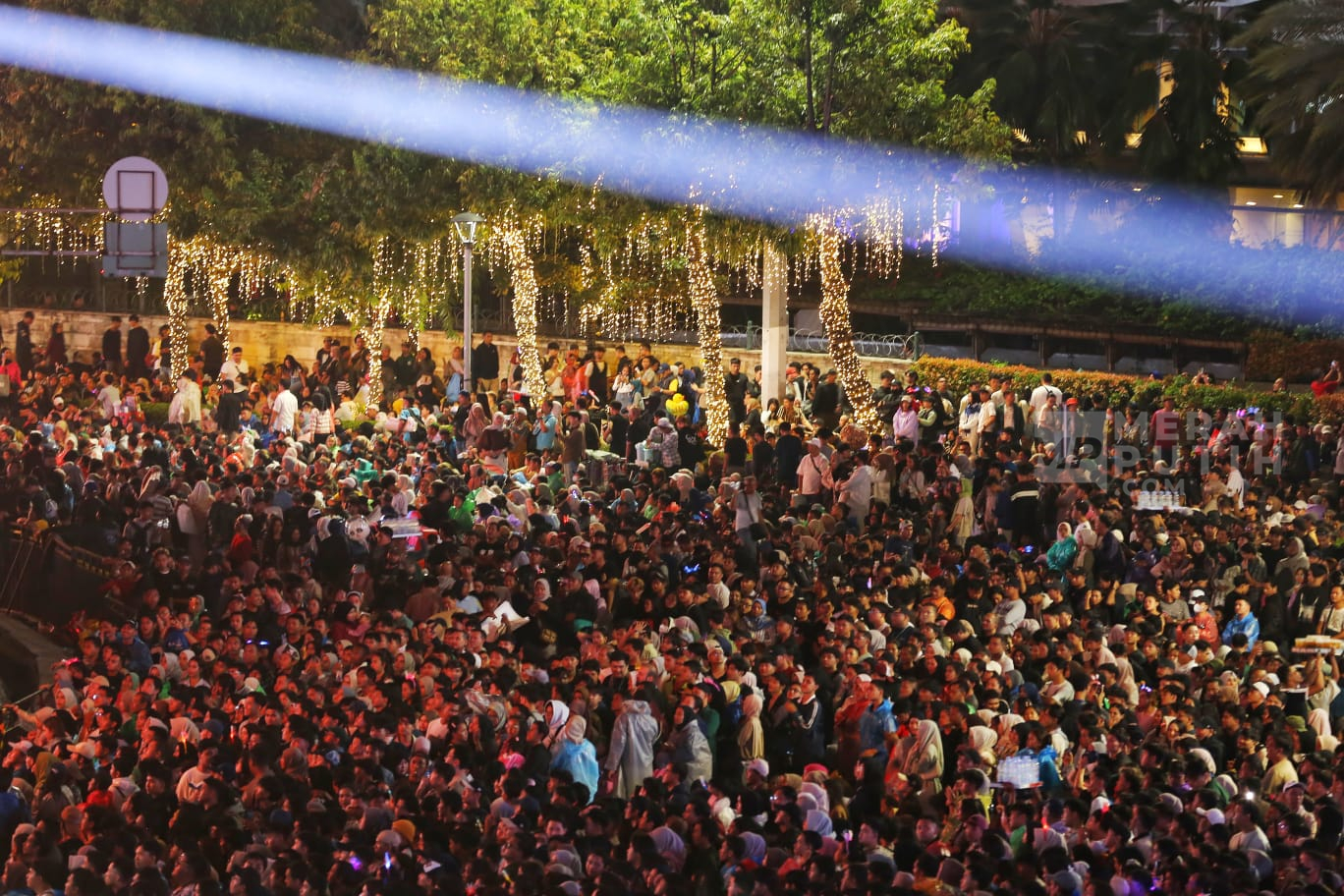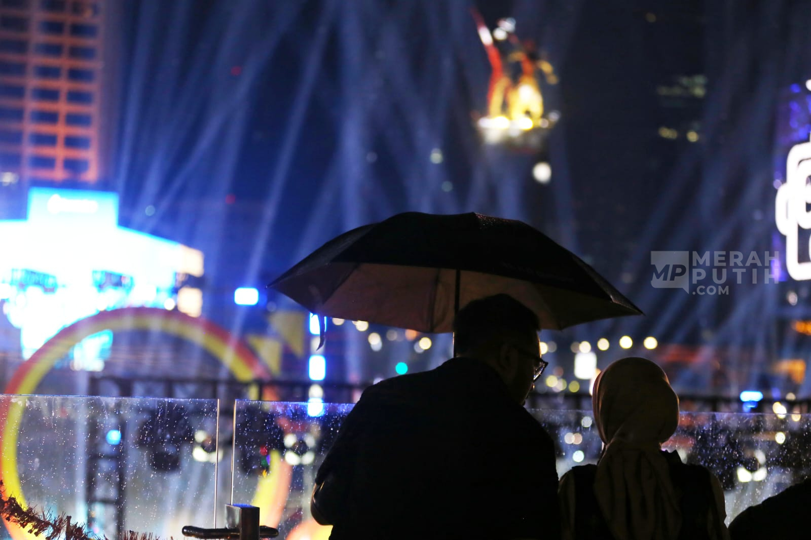 Untuk mengakomodasi antusiasme masyarakat, Pemprov DKI Jakarta menyiapkan delapan panggung hiburan yang tersebar di sejumlah titik strategis. Selain pertunjukan musik, rangkaian acara malam pergantian tahun juga dimeriahkan dengan festival cahaya berupa atraksi video mapping pada bangunan ikonik, instalasi cahaya artistik, hingga pertunjukan drone show yang memukau, menciptakan suasana perayaan yang meriah namun tetap sarat makna. (Foto: MP/Didik Setiawan).