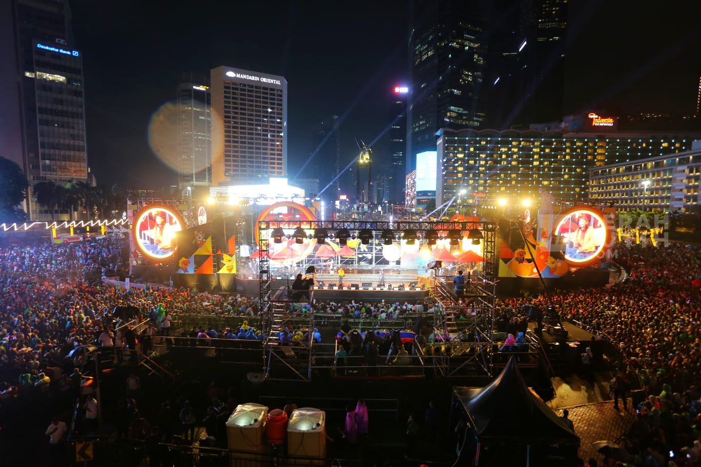 Warga Padati Panggung Perayaan Malam Pergantian Tahun Baru 2026 di Bundaran HI Jakarta