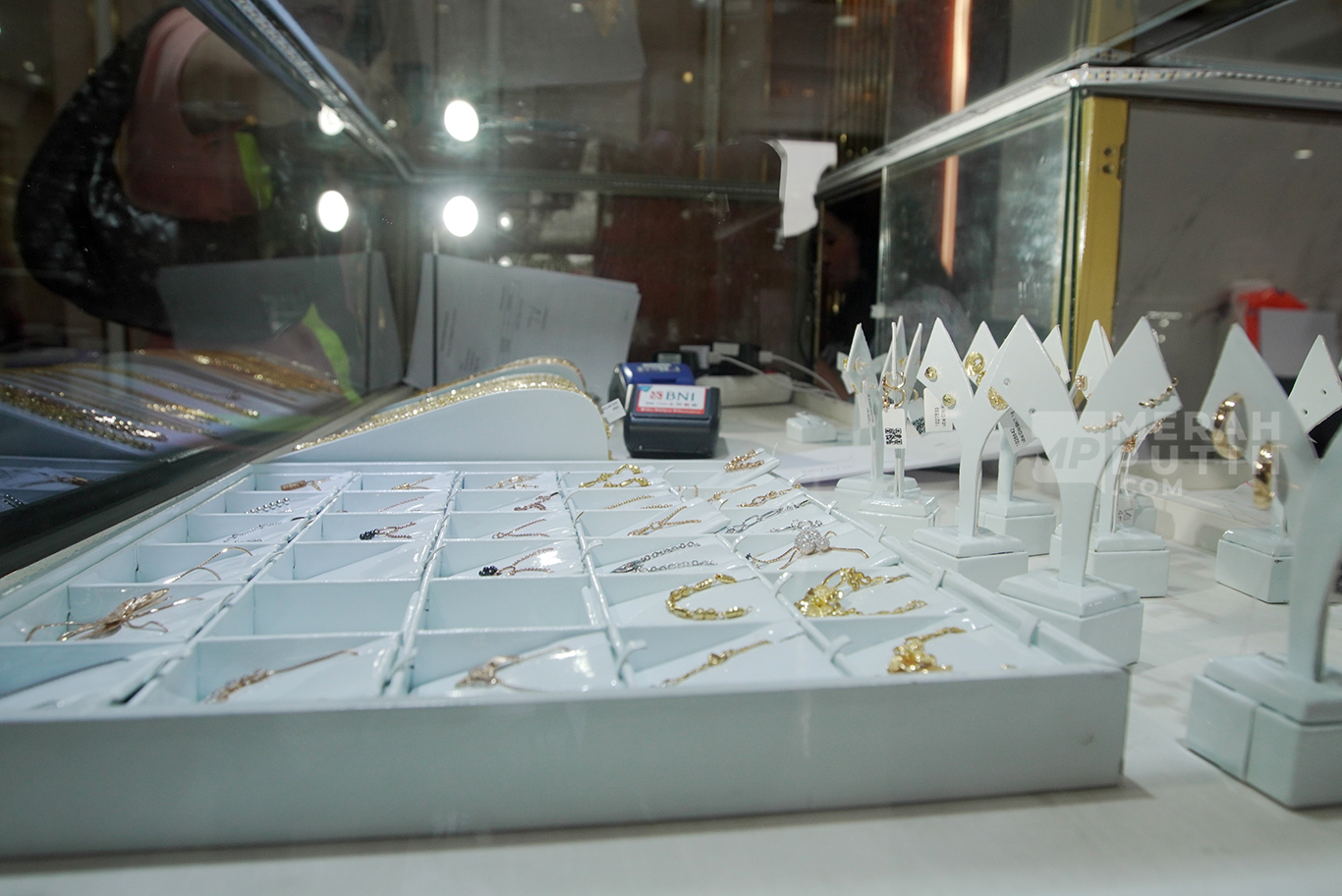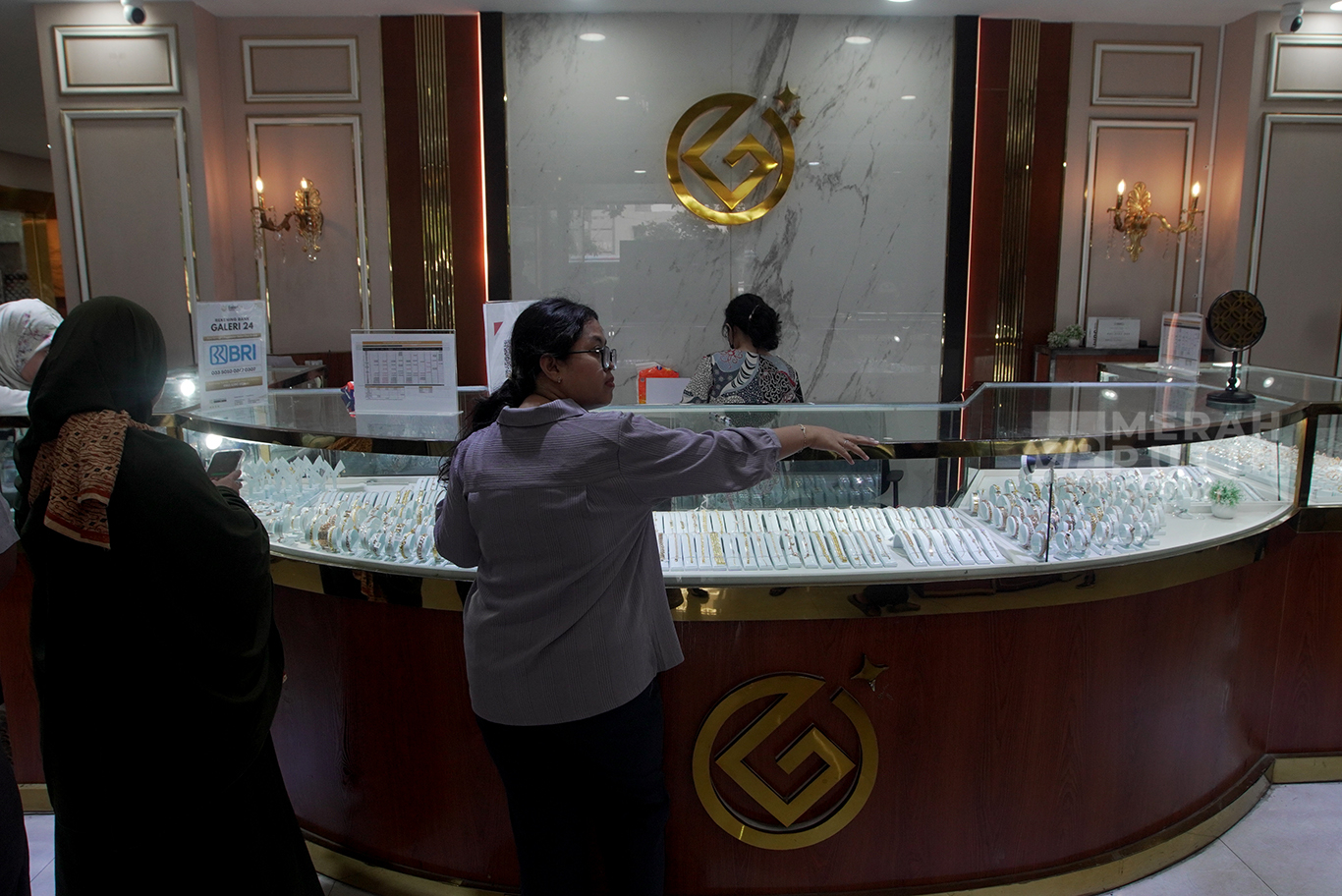 Merahputih.com - Pengunjung memilih perhiasan emas di Gerai Galeri 24 PT Pegadaian, Kawasan Jalan Salemba Raya, Kenari, Jakarta Pusat, Jumat (10/10/2025).