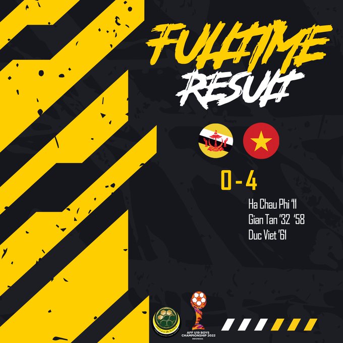 Hasil pertandingan Vietnam U-19 vs Brunei U-19 di Stadion Patriot Candrabhaga, Rabu (6/7). Foto: Twitter/@AFFPresse