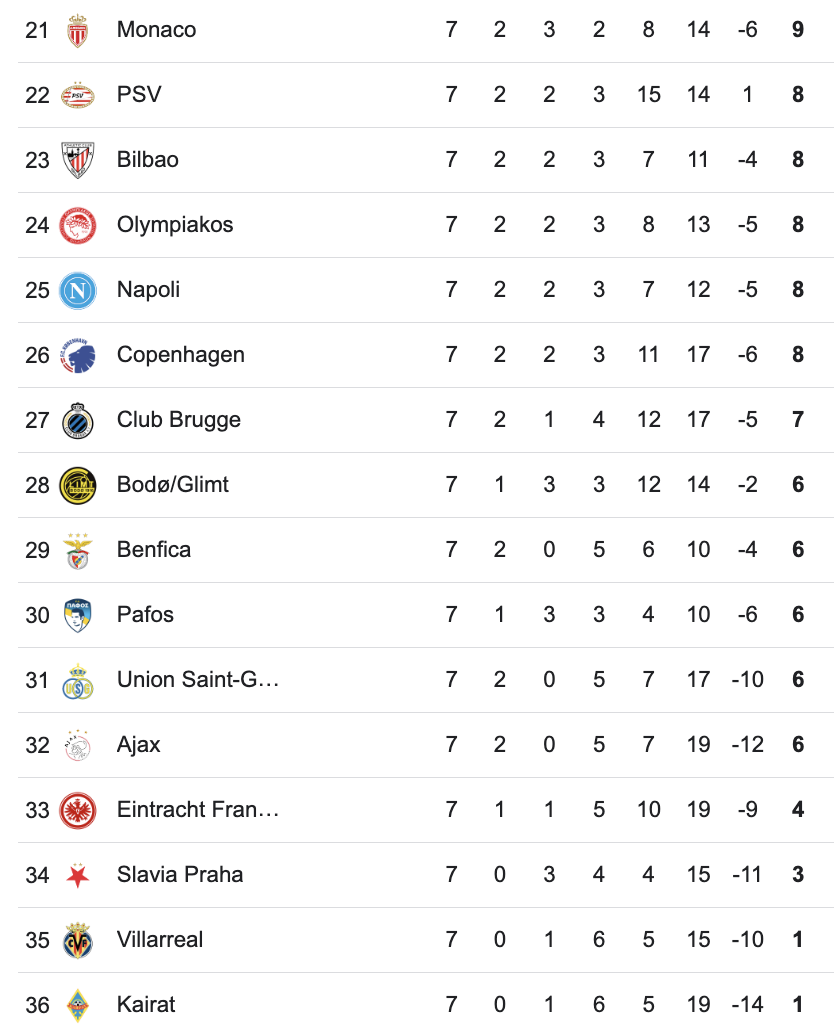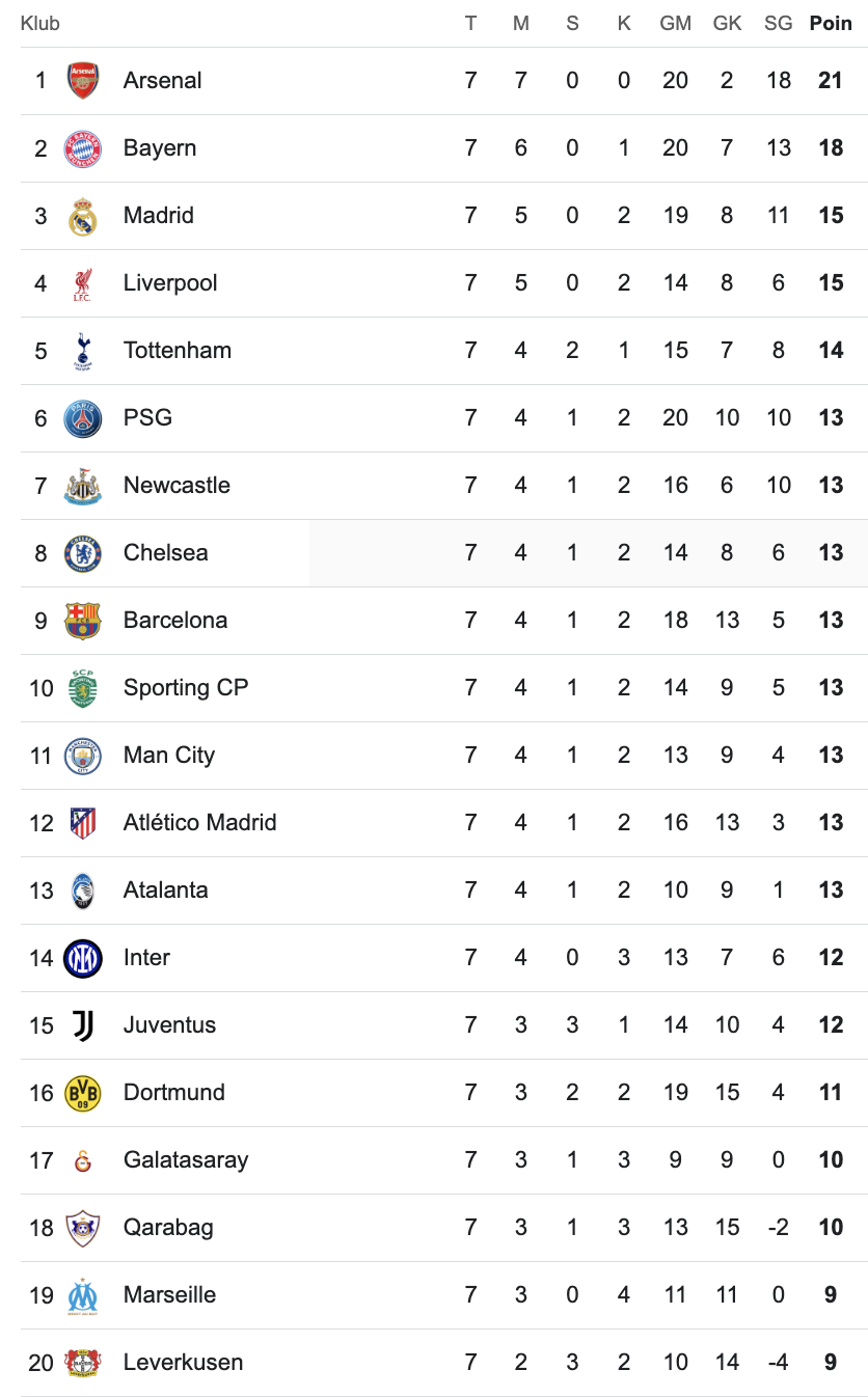 Klasemen Liga Champions. (Tangkapan Layar Google)