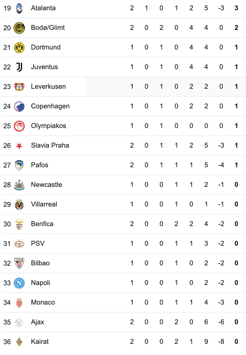 Sementara itu, Kairat Almaty yang kalah telak dari Real Madrid menghuni dasar klasemen.