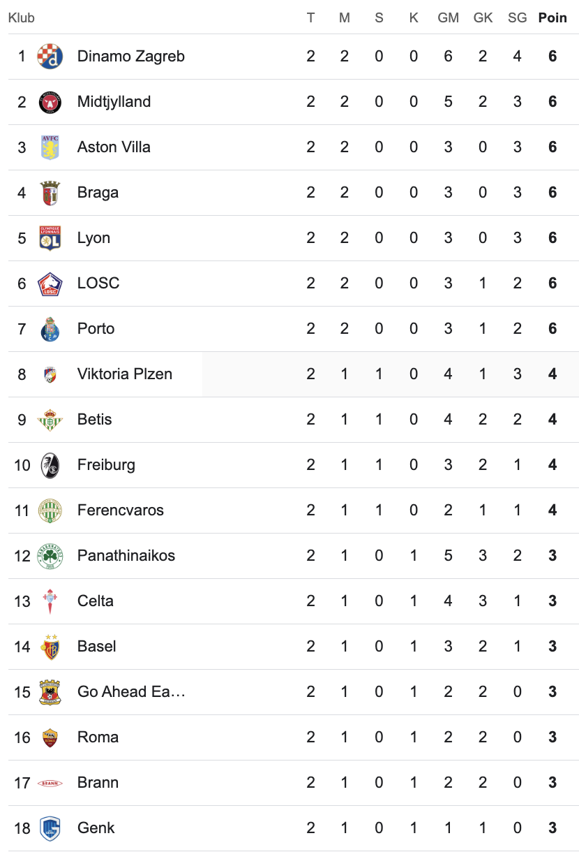 Klasemen Liga Europa