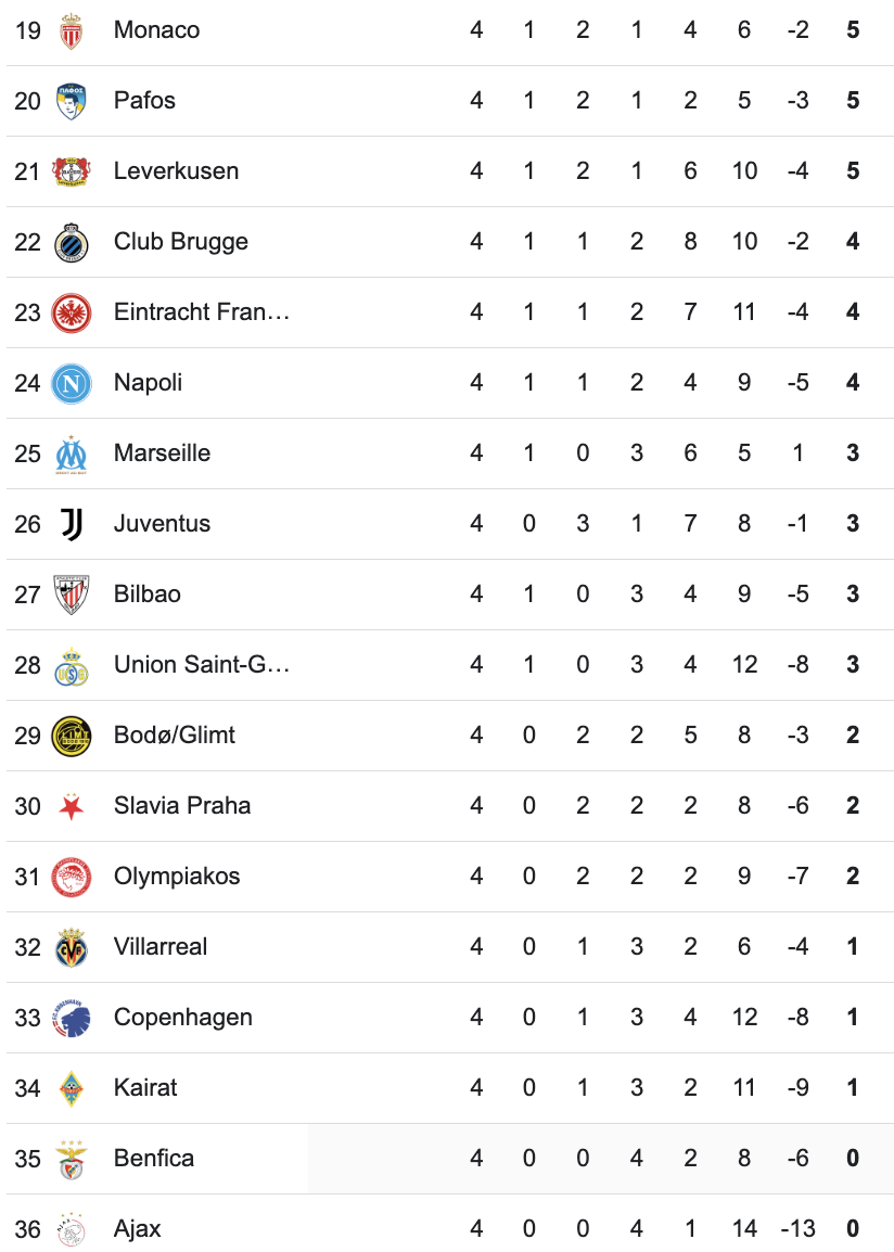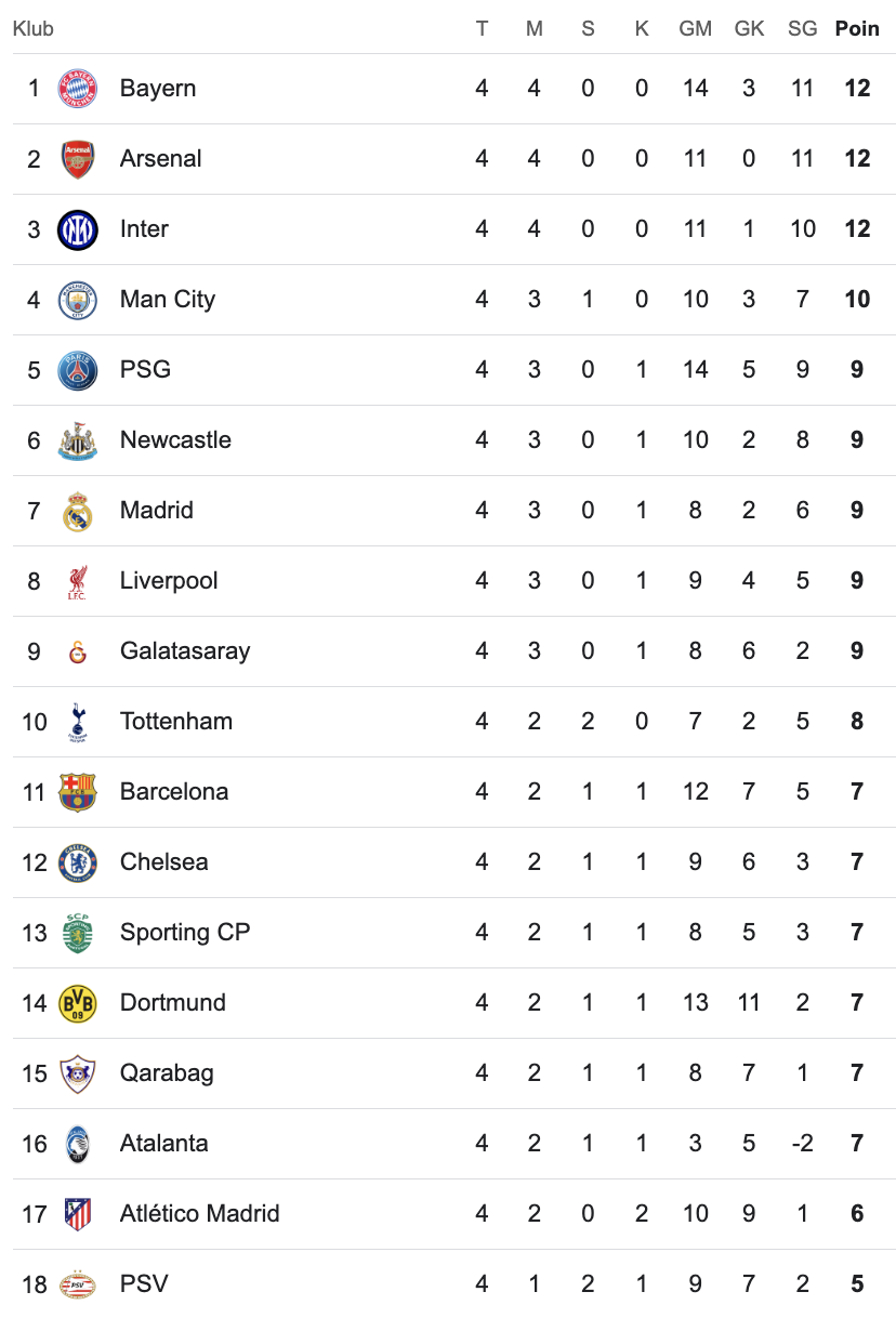 Hasil Lengkap Matchday 4 Liga Champions Kamis Dini Hari dan Klasemen Sementara