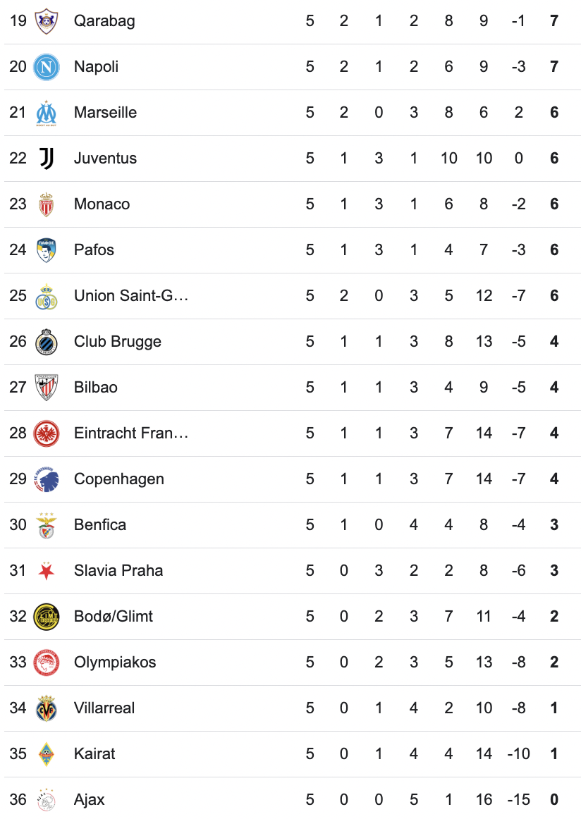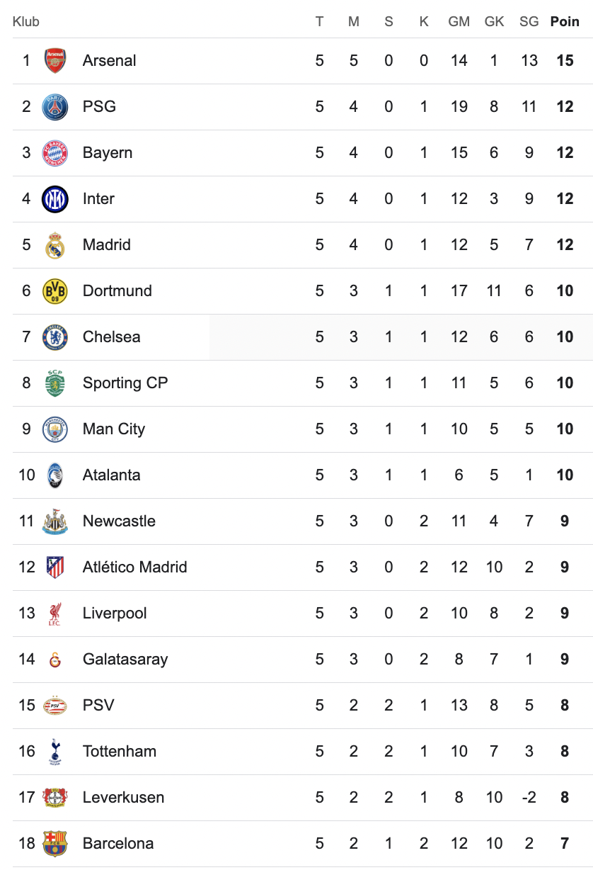 Hasil Lengkap Matchday 5 Liga Champions Kamis Dini Hari dan Klasemen Sementara