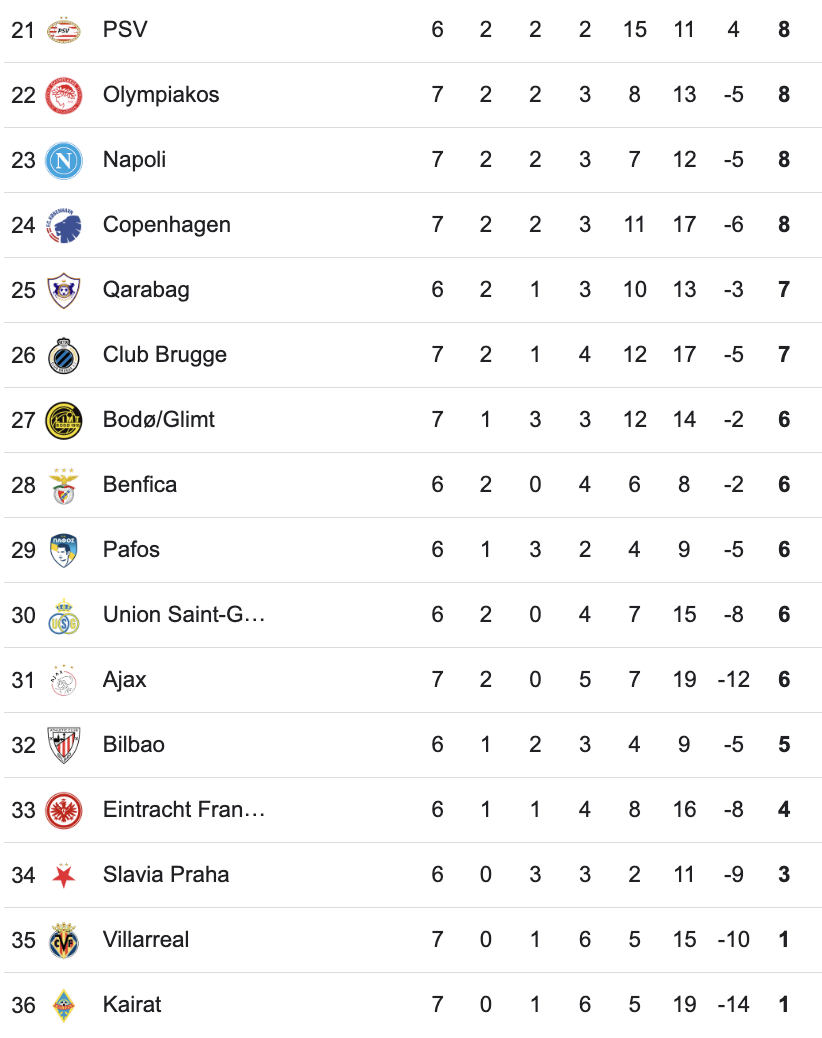 Hasil Lengkap Matchday 7 Liga Champions Rabu Dini Hari dan Klasemen Sementara