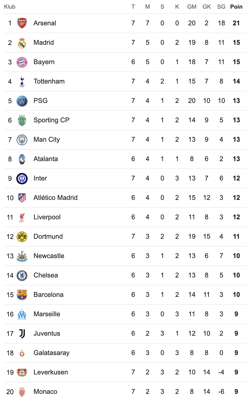 Klasemen Liga Champions