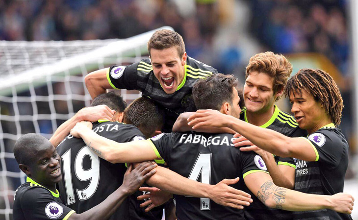 Chelsea unggul empat angka atas tim peringkat kedua Tottenham Hotspurs, setelah mengalahkan Everton 3-0 di Goodison Park, Minggu (30/4). Tiga gol kemenangan The Blues dicetak oleh Pedro, Gary Cahill, dan Willian.
