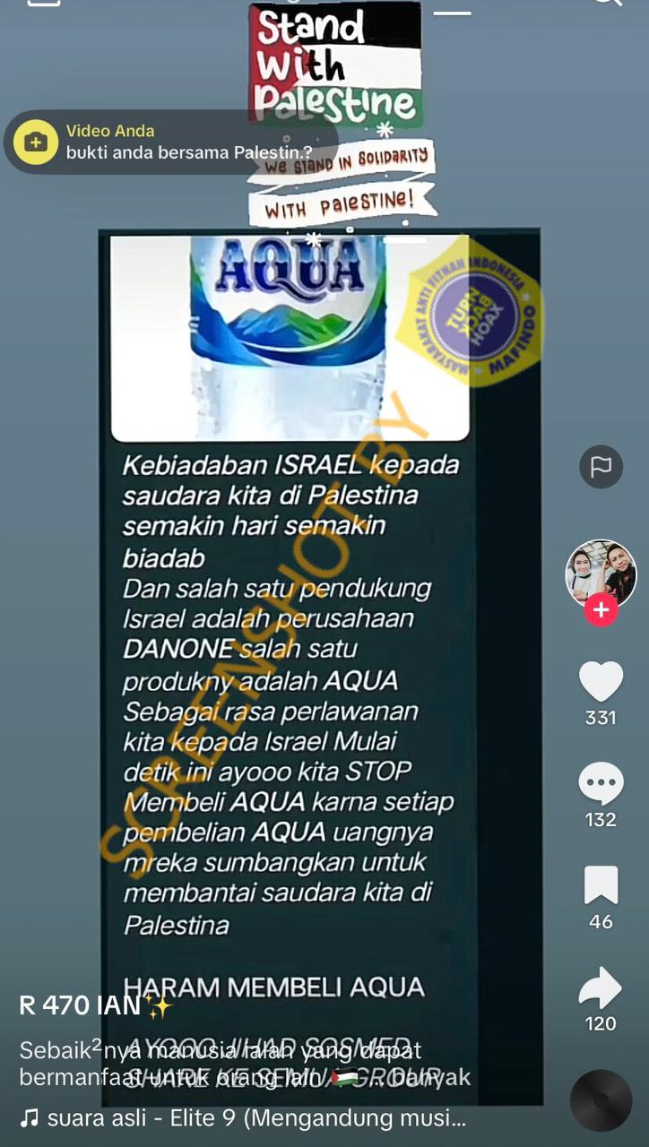 [HOAKS atau FAKTA]: Danone Aqua Mendukung Israel