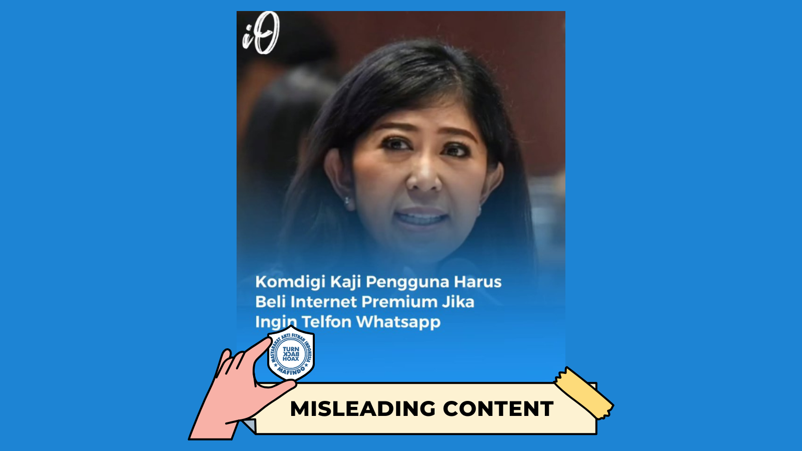 Menteri Komunikasi dan Digital Meutya Hafid menegaskan informasi tersebut tidak benar. Unggahan berisi klaim “Komdigi kaji pengguna harus beli internet premium untuk WhatsApp Call” merupakan konten hoaks yang menyesatkan. (Knu)