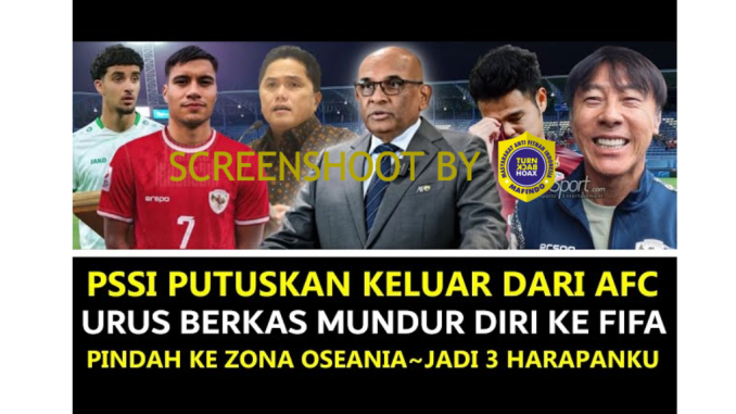 Unggahan berisi klaim “PSSI putuskan keluar dari AFC dan pindah ke zona Oceania” merupakan konten palsu.