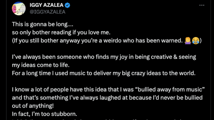 Sebelumnya memang diketahui bahwa Iggy Azalea tengah mempersiapkan album keempatnya. Album terbaru selepas The End of an Era yang rilis pada 2021. Namun mungkin masih ada harapan.