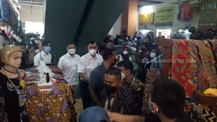 Menteri Koordinator Bidang Kemaritiman dan Investasi Luhut Binsar Panjaitan meninjau Pasar Klewer, Solo, Jawa Tengah, Kamis (5/8). (MP/Ismail)