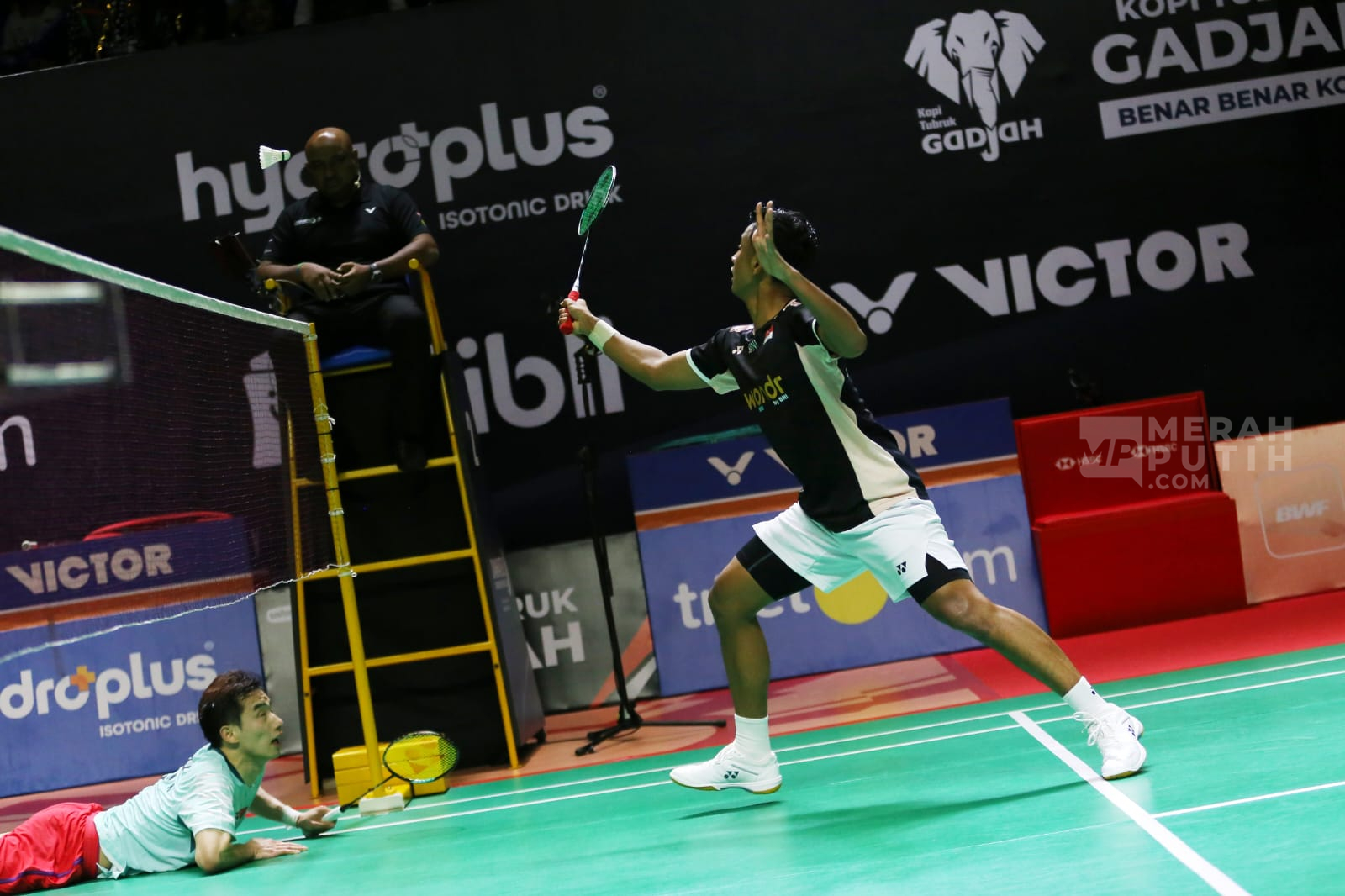 Merahputih.com - Selebrasi tunggal putra Indonesia, Farhan Alwi usai mengalahkan tunggal putra China, Wang Zheng Xing dalam babak 16 besar turnamen Indonesia Masters 2026 di Istora Senayan, Gelora Bung Karno (GBK), Jakarta, Kamis (22/1/2026).