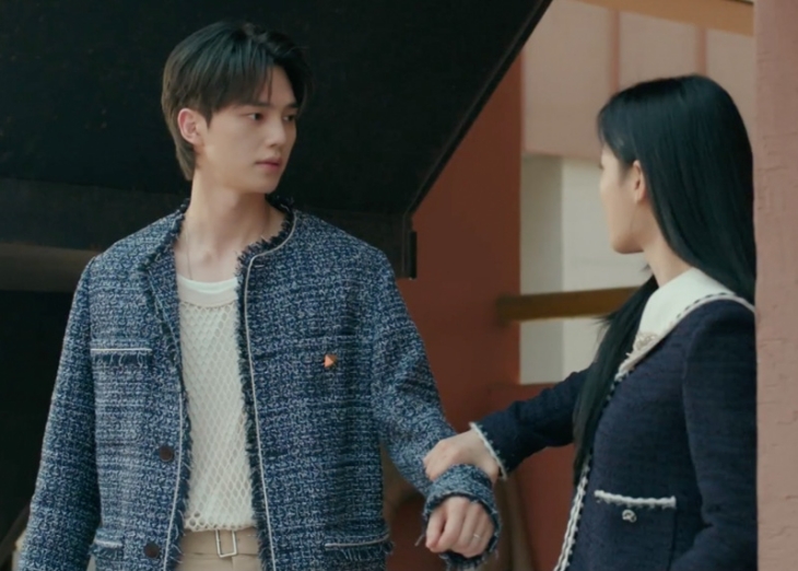 Song Kang tampil dengan outfit yang sangat stylish di episode 6, sesuai dengan tren terkini. Kang mengenakan Tweed Fringe Button Jacket dari Valentino, dipadukan dengan celana bahan berwarna khaki dan kaos putih polos. Menghadirkan kesan elegan nan prestise.