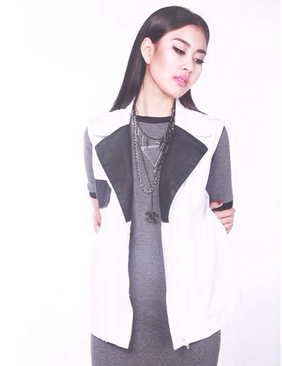 Shanaz Sadiqah memakai mini dress berwarna putih dengan tambahan blazer bermotif seperti kemeja berwarna hijau. Untuk menunjang penampilannya, Shanaz Sadiqah memakai sendal semi sepatu berwarna kuning dengan bentuk yang unik. Perpaduan warna putih, hijau dan kuning sangat serasi, warna-warnanya tidak bertabrakan. Kombinasi seperti ini dapat digunakan untuk pergi bersama teman-teman. (Baca: Gaun Pengantin Unik dari Bulu Angsa)