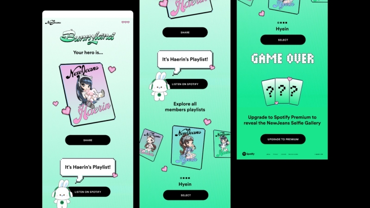 Fitur interaktif ini memungkinkan penggemar untuk tahu anggota NewJeans satu mana yang cocok menjadi hero-nya. (Foto: Spotify)