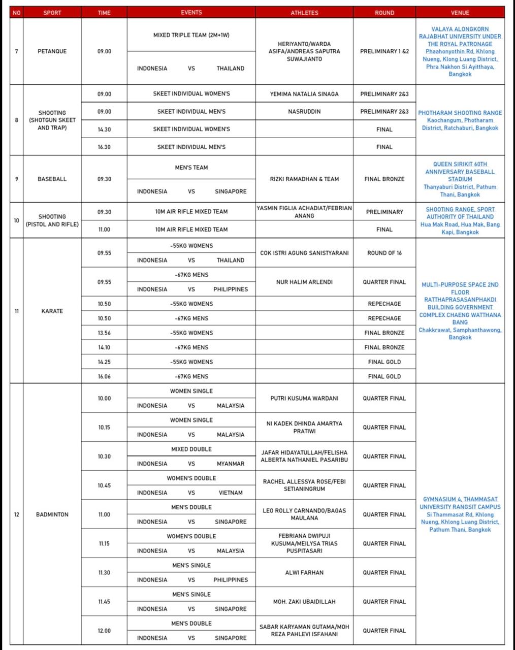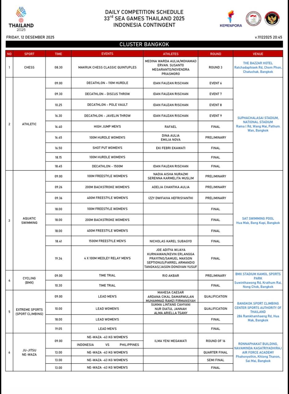 Jadwal Tim Indonesia di SEA Games 2025 12 Desember 2025