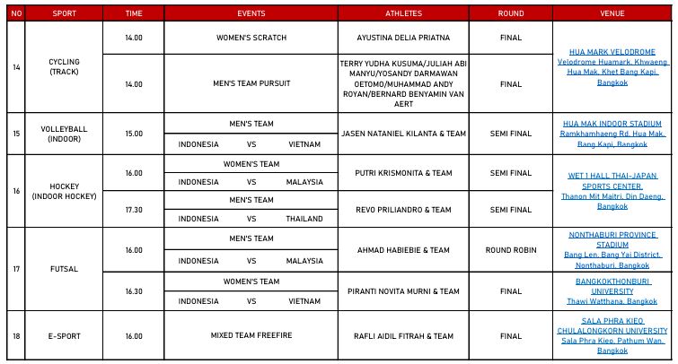 Jadwal Indonesia di SEA Games 2025 Hari ini, Kamis (18/12)