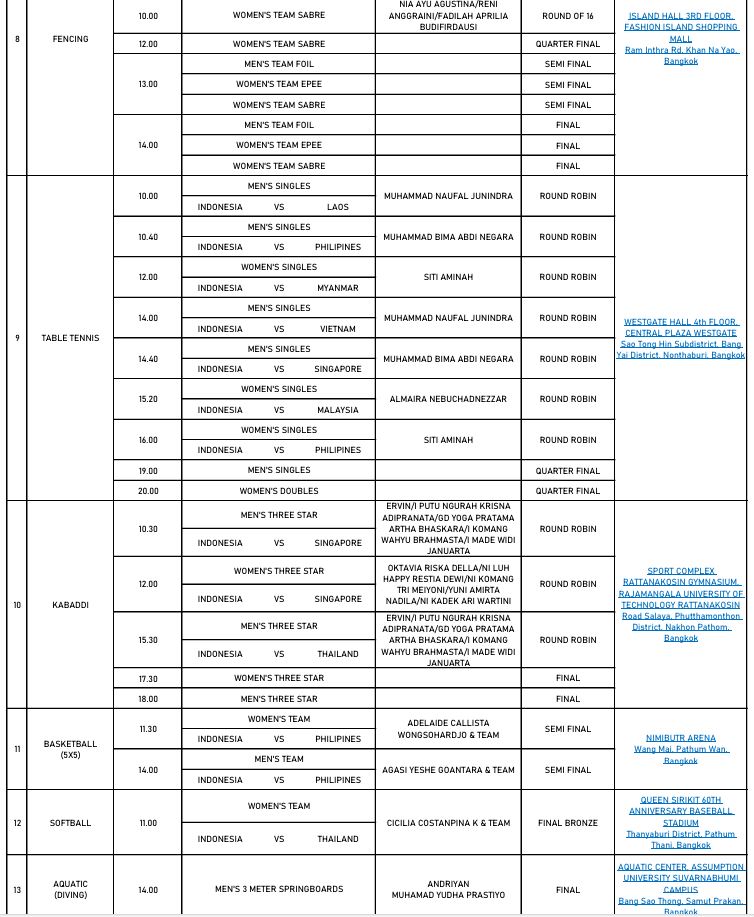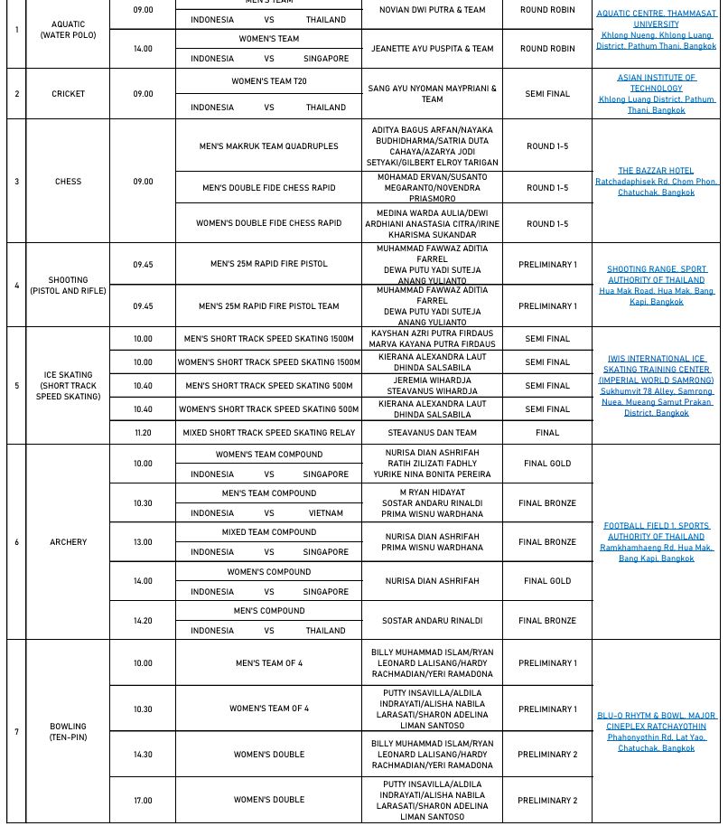 Jadwal lengkap tim Indonesia di SEA Games 2025, Kamis (18/12). Foto: Dok. NOC Indonesia