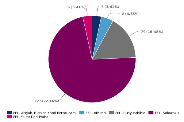 Berdasarkan data yang dihimpun Isentia sejak 29 Oktober hingga 4 November, pembicaraan mengenai Salawaku mencapai 72,1%, diikuti oleh Rudy Habibie 16,48%, Athirah 4,55% dan Surat dari Praha serta Aisyah, Biarkan Kami Bicara masing-masing sebesar 3,41%. Data yang dianalisis selama tujuh hari menjelang penyelenggaraan FFI 2016 itu menunjukkan bahwa Twitter merupakan sumber pembicaraan terbesar percakapan tentang tema ini. Adapun saluran-saluran media yang paling banyak memberikan kontribusi pemberitaan tentang festival tersebut adalah portal kantor berita Indonesia.