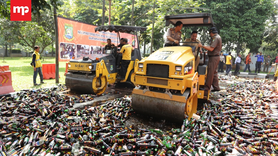 Bersama Kapolres Metro Tangerang Kota Kombes Pol Harry Kurniawan dan Kasat Pol PP Kota Tangerang Mumung Nurwana, Walikota Tangerang Arief Wismansyah memusnahkan ribuan botol minuman keras dengan menggunakan kendaraan alat berat di halaman gedung Pusat Pemerintahan Kota Tangerang.