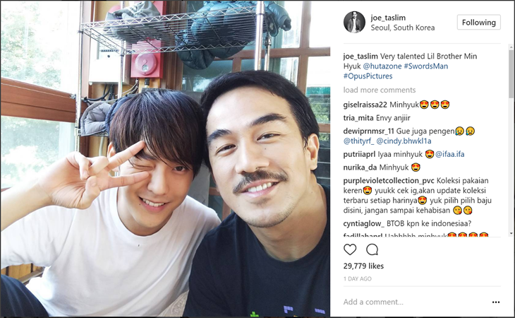 Belum lama ini, Joe Taslim memamerkan foto dirinya bersama Lee Minhyuk BtoB di Instagram pribadinya. Ia juga memuji keahlian Minhyuk karena selain bisa bernyanyi, pria berparas tampan itu juga jago berakting.