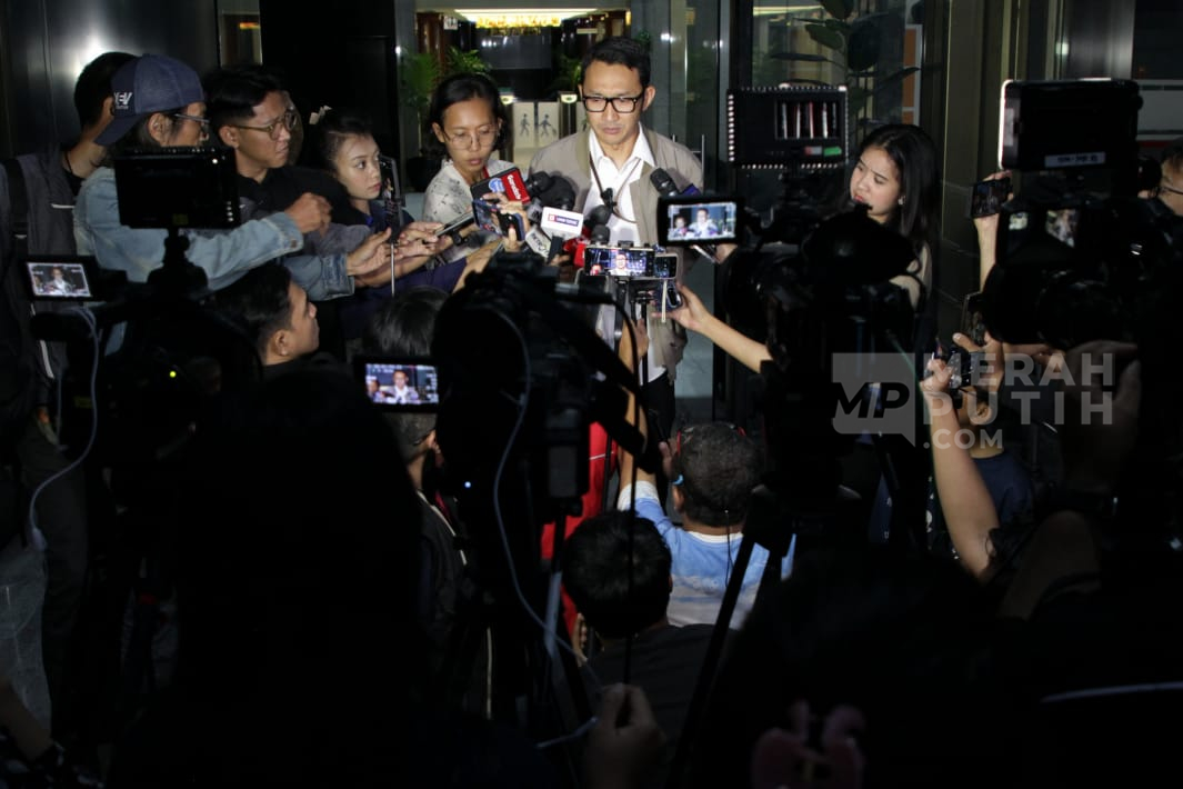 Merahputih.com - Juru Bicara KPK Budi Prasetyo, menyampaikan keterangan kepada wartawan, di Gedung Merah Putih KPK, Jakarta, Sabtu (10/1/2026).