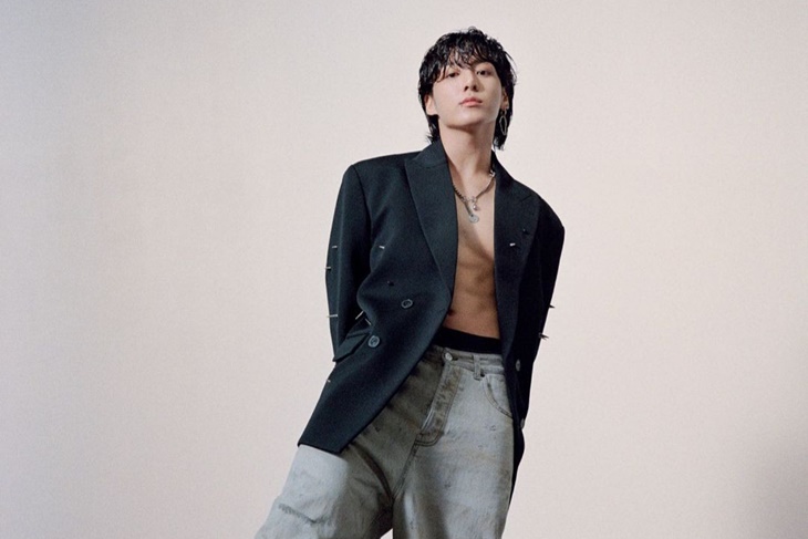 JUNGKOOK duduk di sebuah ruangan bercat abu-abu. Tato besar dan deretan piercing menghiasi lengan, bibir, serta cupingnya. Anggota termuda dari BTS itu kini tengah aktif tampil sebagai solois dalam berbagai agendanya.