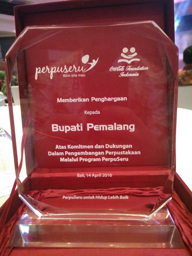 Penghargaan untuk Kabupaten Pemalang program PerpuSeru. (sumber: istimewa)