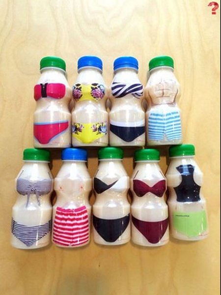 Botol minuman ini didesain seperti tubuh manusia, sehingga saat para pembeli menyobek plastiknya, mak akan terlihat gambar bikini di dalamnya.