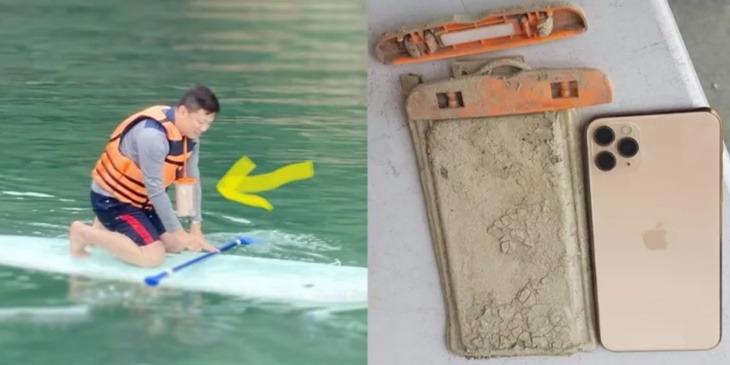 Tapi, ketika dia mendayung, tali pengikat case ponselnya terseubt terlepas. Chen berusaha untuk menyelamatkan ponselnya yang tercebur. Beruntung, Chen masih sempat memasukan iPhone 11 miliknya ke dalam case tahan air sebelum melakukan perjalanan mendayung dengan kanonya.
