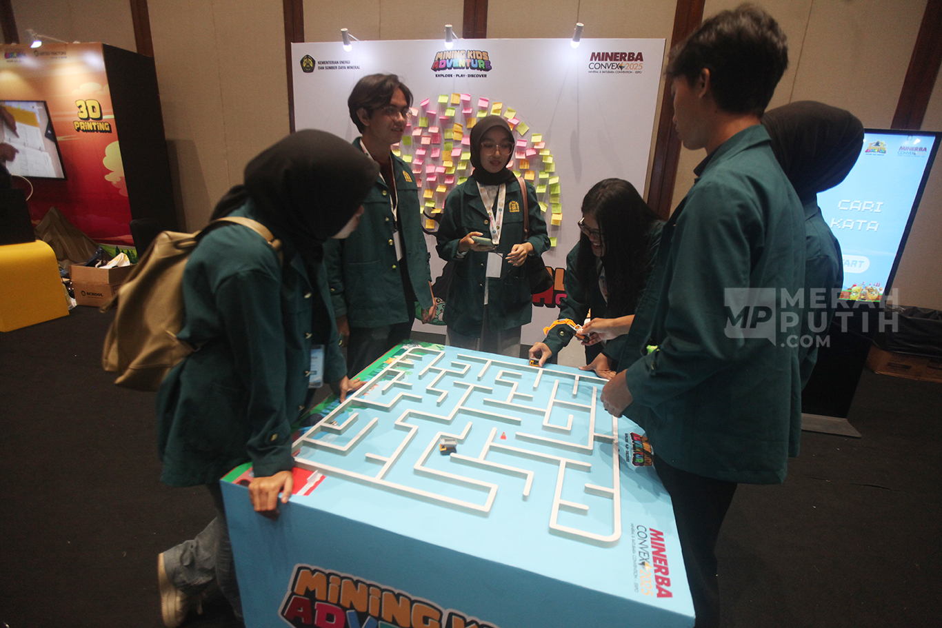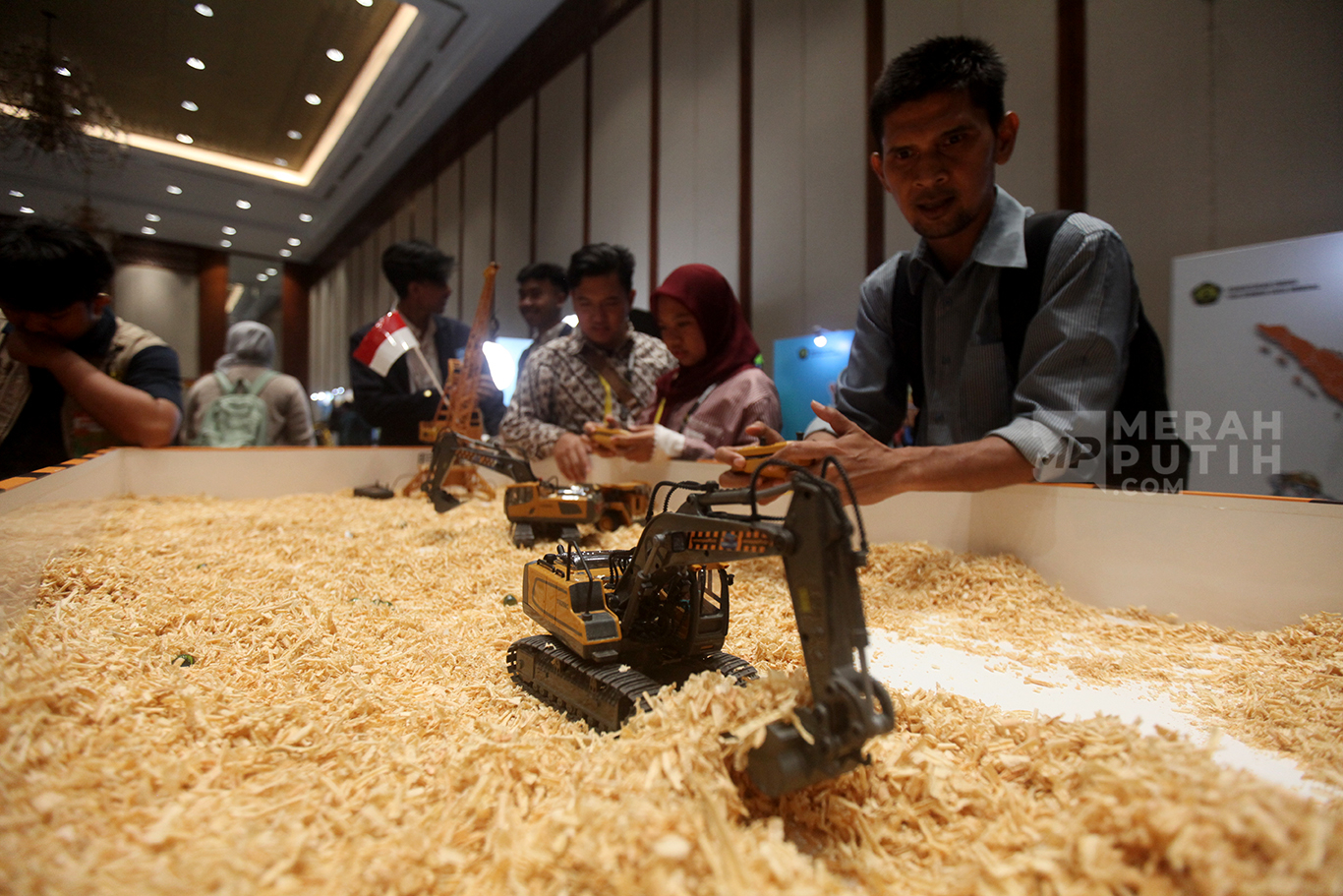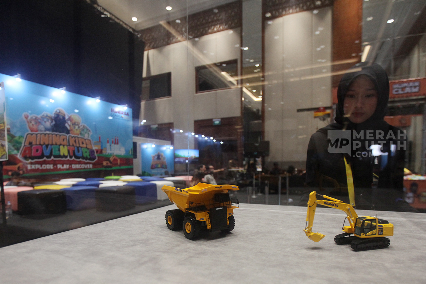 Merahputih.com - Pengunjung memainkan mainan miniatur alat pertambangan saat pameran Mineral dan Batu bara Convention - Expo (Minerba Convex) 2025 di Jakarta International Convention Center (JICC), Senayan, Jakarta, Rabu (15/10/2025).
