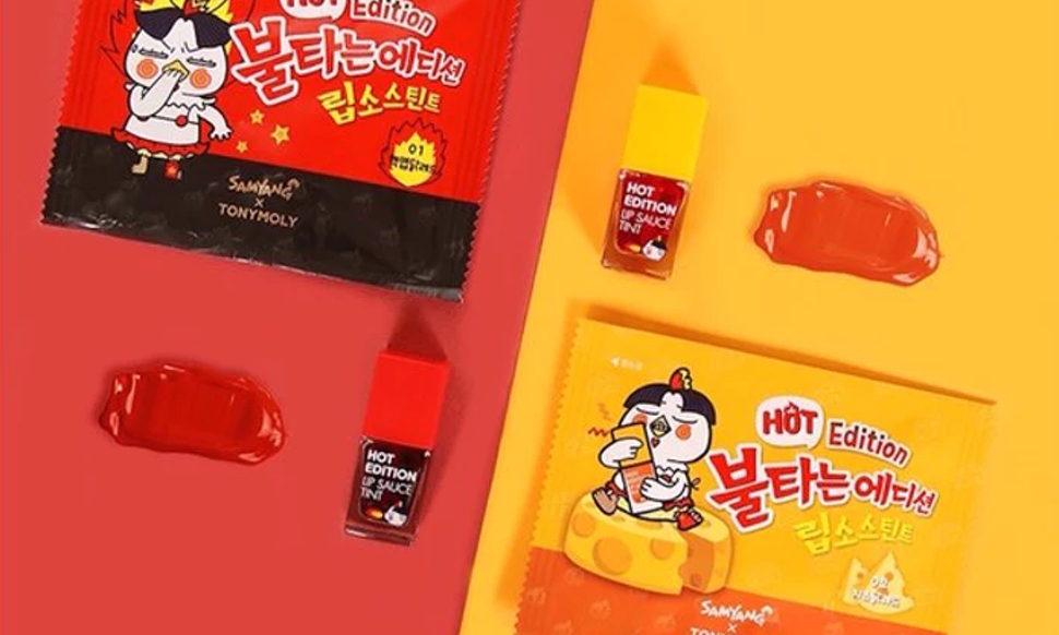 Berkolaborasi dengan brand makeup TonyMoly, mi Buldak Spicy Chiken Ramen meluncurkan Samyang x TonyMoly Hot Edition. Yang unik, kemasan produk dibuat 'menembus batas' antara kosmetik dan makanan.
