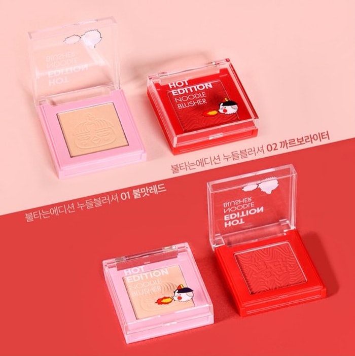 Kosmetik Samyang X TonyMoly Hot Edition tersedia untuk beberapa alat makeup, seperti perona pipi, lipt tint, hingga lip balm.