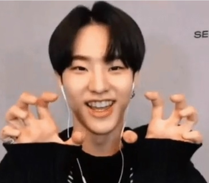 Dalam sebuah video call, Hoshi terlihat menekuk jari jemarinya seperti cakar harimau, yang sering dilakukannya.
