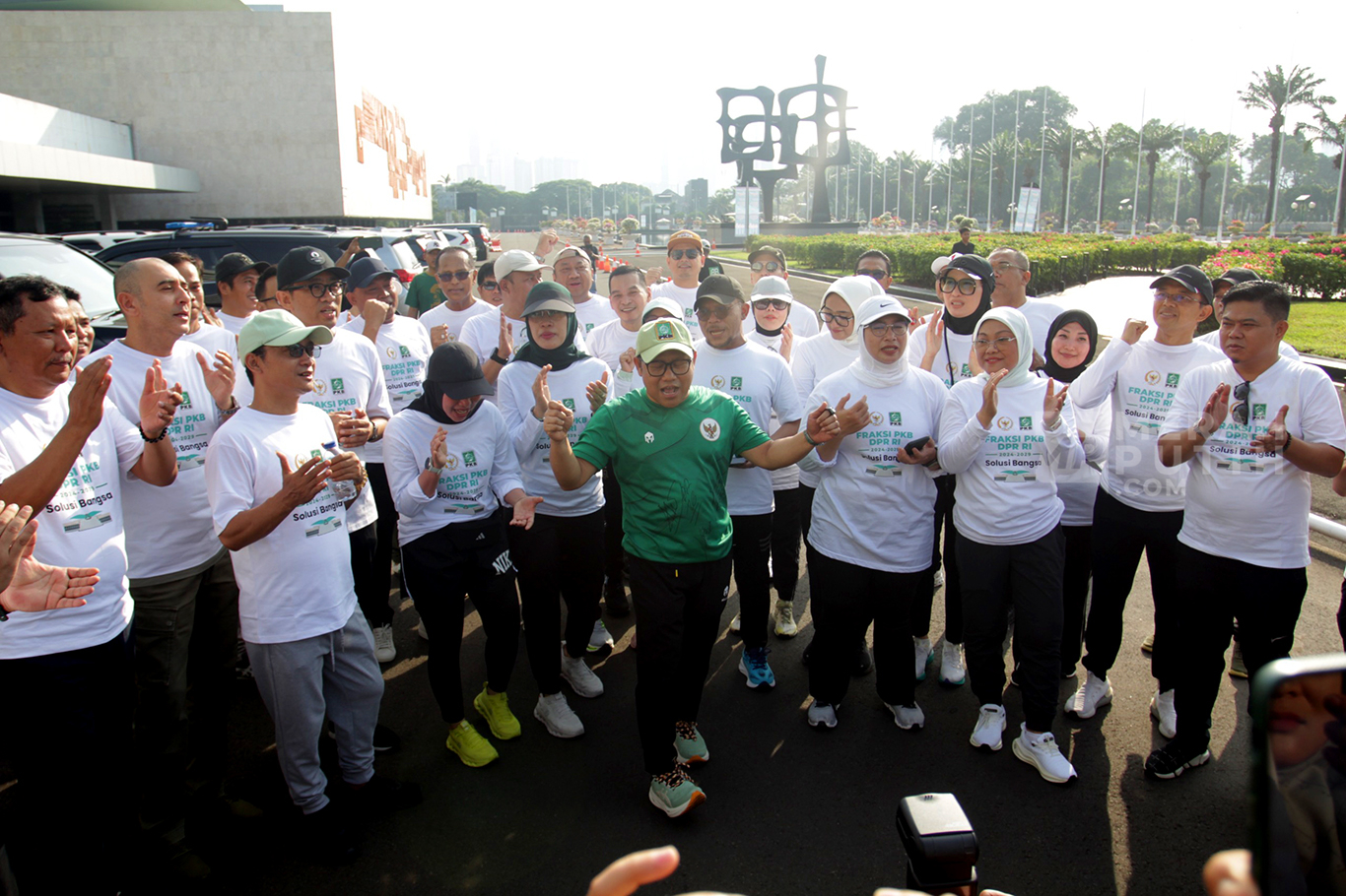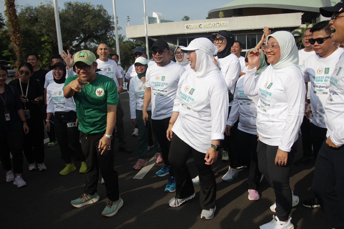 MerahPutih.com - Ketua Umum PKB Abdul Muhaimin Iskandar, berolahraga pagi, sebelum kegiatan Sekolah / Pendidikan Legislatif (Orientasi) untuk Anggota DPR/MPR Fraksi PKB Terpilih (2024-2029), di Kompleks Parlemen, Senayan, Jakarta, Sabtu (14/9/2024).